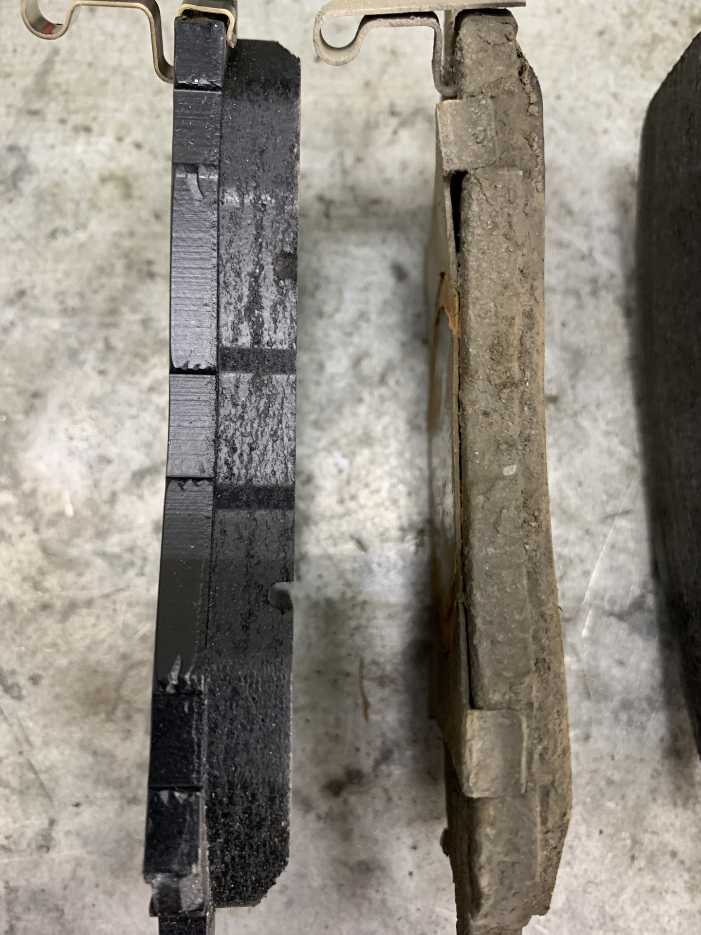 Замена прошла штатно, все откручивалось и закручивалось. После замены амортизаторов и пружин сделали регулировку схождения. Попутно с работами по подвеске, заменили передние колодки и тормозную жидкость, прокачали тормоза. Колодки установил Akebono AN-650WK. Родные колодки прошли 80600 км, причём интенсивный износ их был замечен после прошивки блока полного привода на S-AWC… Совпадение? Не думаю! 🤔.