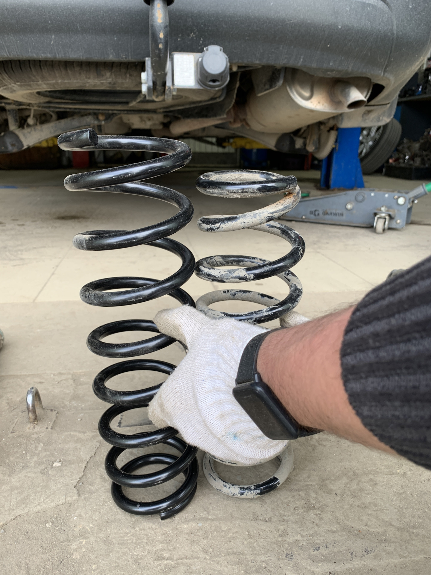Приветствую читателей моего БЖ! После установки фаркопа прошлым летом заметил, что зазор между задним колесом и аркой стал намного ниже штатного. А после маломальской загрузки автомобиля, уже явно бросался в глаза просевший зад. Начал изучать варианты увеличения клиренса. Проставки отпали в связи с тем, что нижние витки пружин уже начали соприкасаться друг с другом, заметны были следы задиров. А проставки ещё больше увеличили бы сжатие пружин.