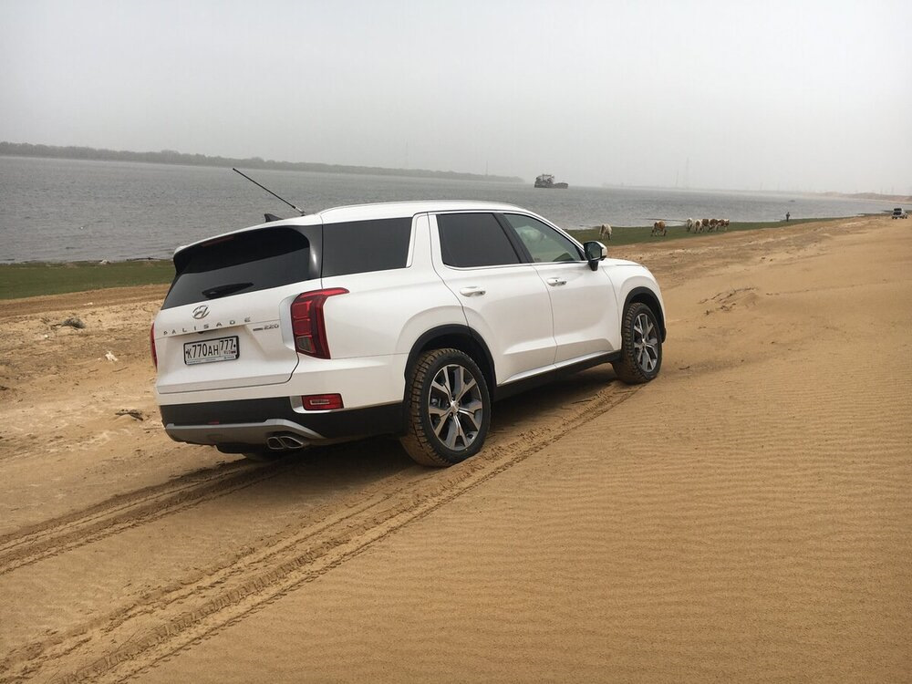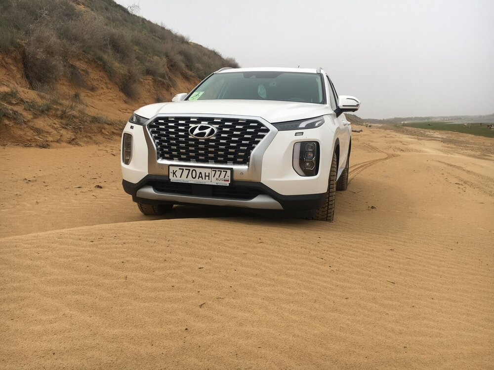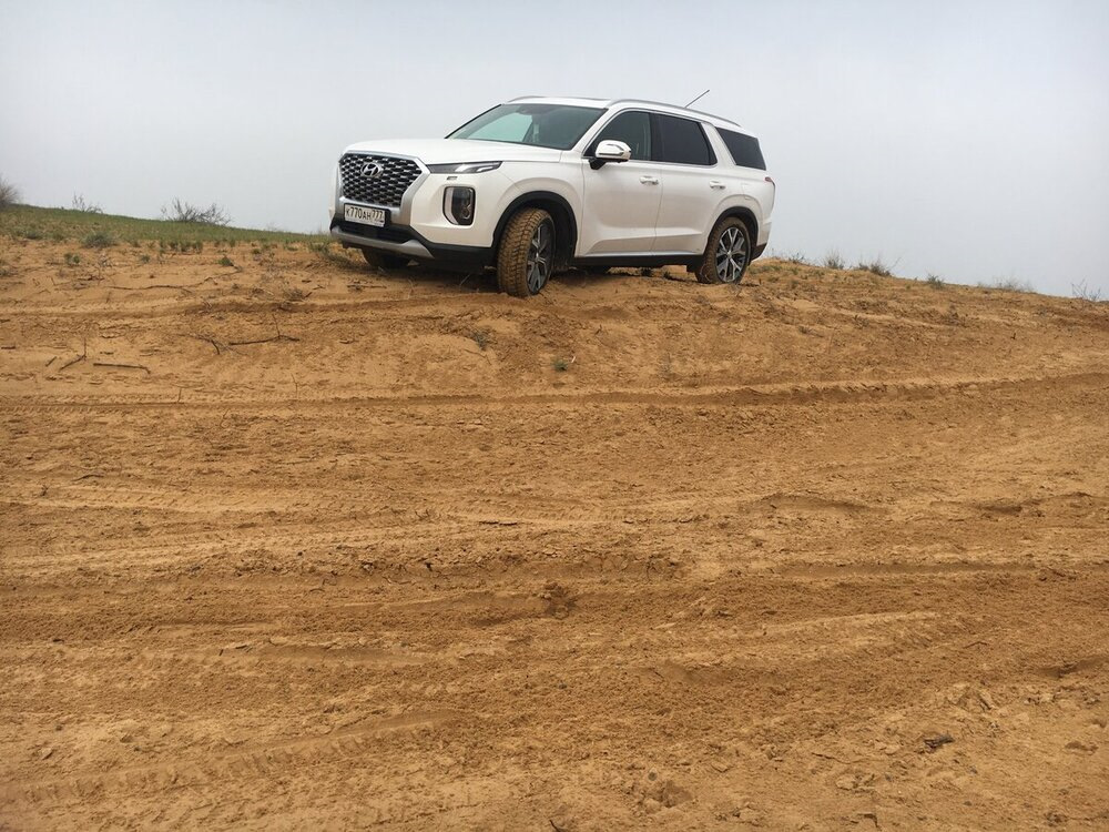 Для полноты ощущений, Палисад обут в штатную зимнюю! резину на 20" дисках, давление в колесах штатное 2.6 bar (люди, ездящие по пескам знают, что это самое неправильное соотношение всего чего только можно 😎)