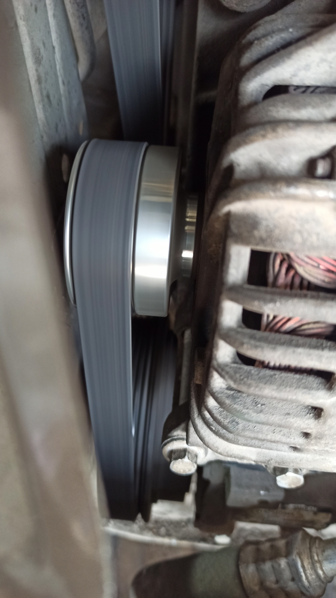 Нет по высоте он не отличается. Попадает ручей в ручей. Я прежде чем его ставить, со штангелем и линейкой со всех ракурсов перемерил. Он у меня на пять ручьев. Родной шкив на 6 ручьев а этот на пять. От Рено я рассматривал, него ждать надо было а этот по наличию. Я его выбирал из 4 шкивов