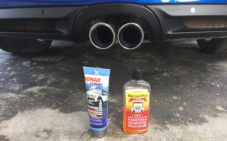 Применение химии — данный метод является самым дешевым, самым быстрым и самым простым, но имеет временную эффективность. В среднем, флакончика одного средства хватит на несколько восстановительных операций. Правда через неделю или после первого дождя / после посещения автомойки от химии не останется и следа, а пластик вновь станет блеклым. Также, данный метод не поможет при глубоких царапинах.