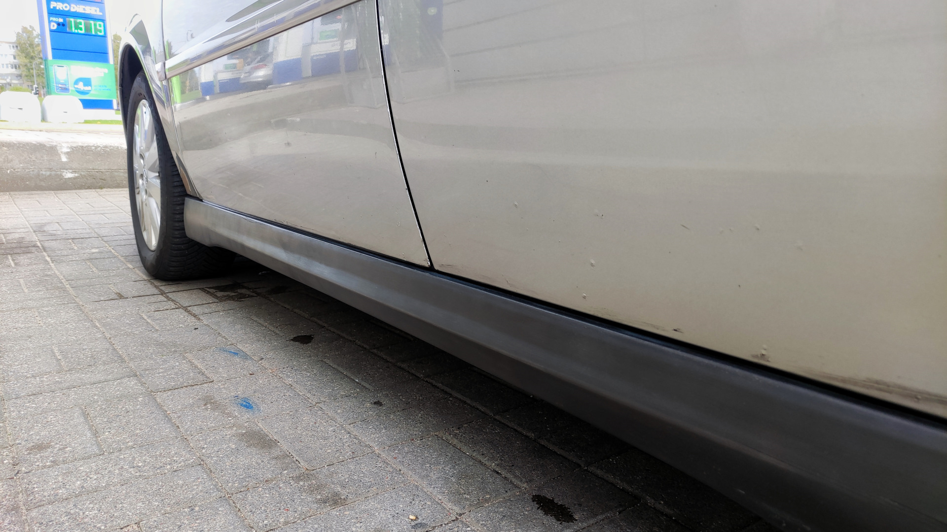 Так как на моём автомобиле установлены пластиковые боковые юбки / пороги, а также пластиковые детали переднего и заднего бампера, решил попробовать восстановить их цвет. После покупки автомобиля, я покрасил данные детали аэрозольной краской чёрного цвета, перед эти просто очистив и обезжирив их. В итоге — она начала облазить после зимы. Прочитав много разных методов в интернете и попробовав химию, которая действительно держит привлекательный внешний вид всего пару дней / неделю, решил попробовать что-то из подручных материалов, так как строительного фена, к сожалению, не имею.