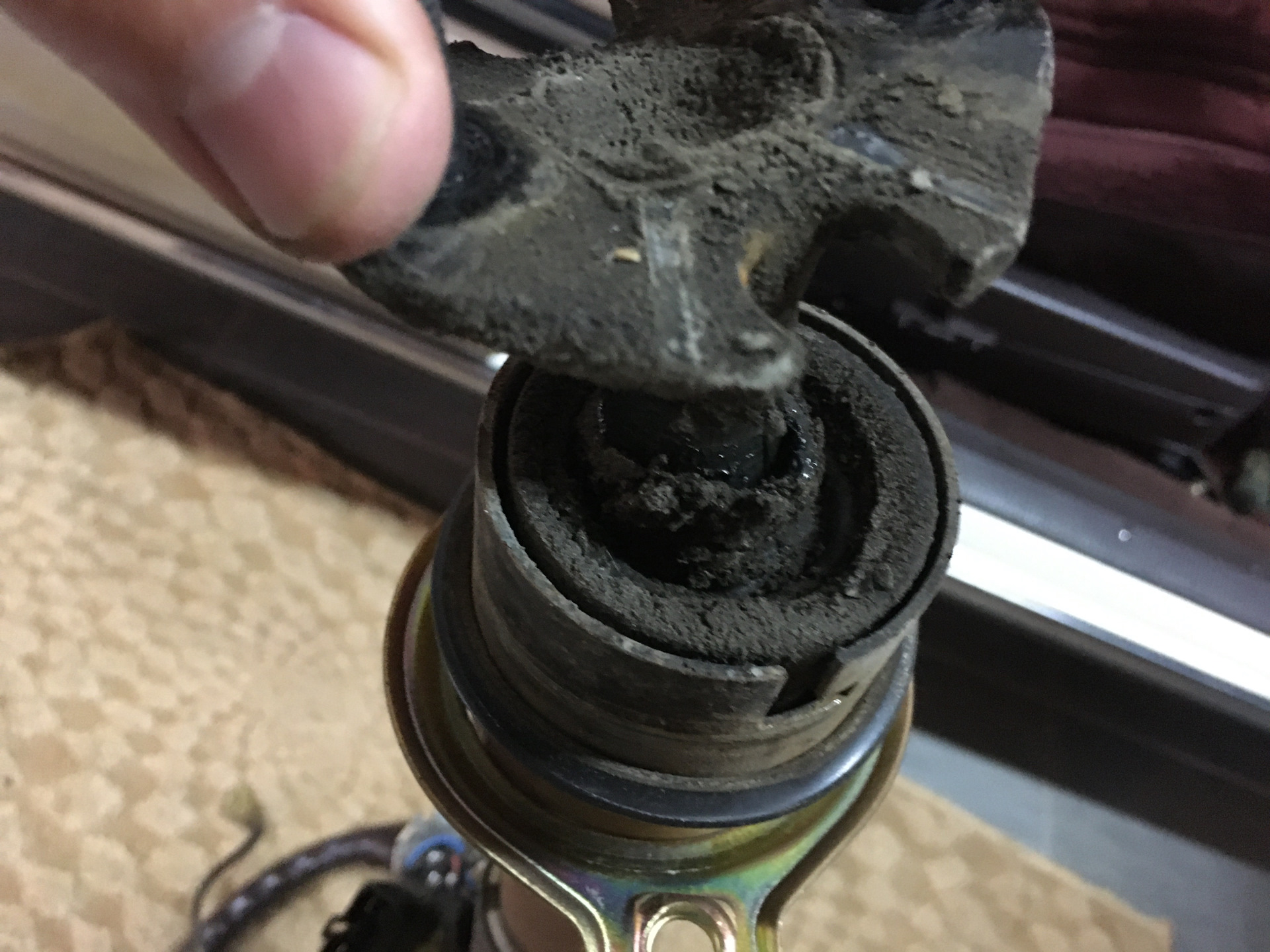 2) Мертвая/умирающая муфта, которая соединяет рулевую колонку и рулевой редуктор, призванная гасить вибрации и бОльшие движения от рамы и не передавать их через рулевое колесо на кузов. Тут все просто — посмотреть на муфту и понять, что с ней так/не так. У меня все норм — значит не оно.