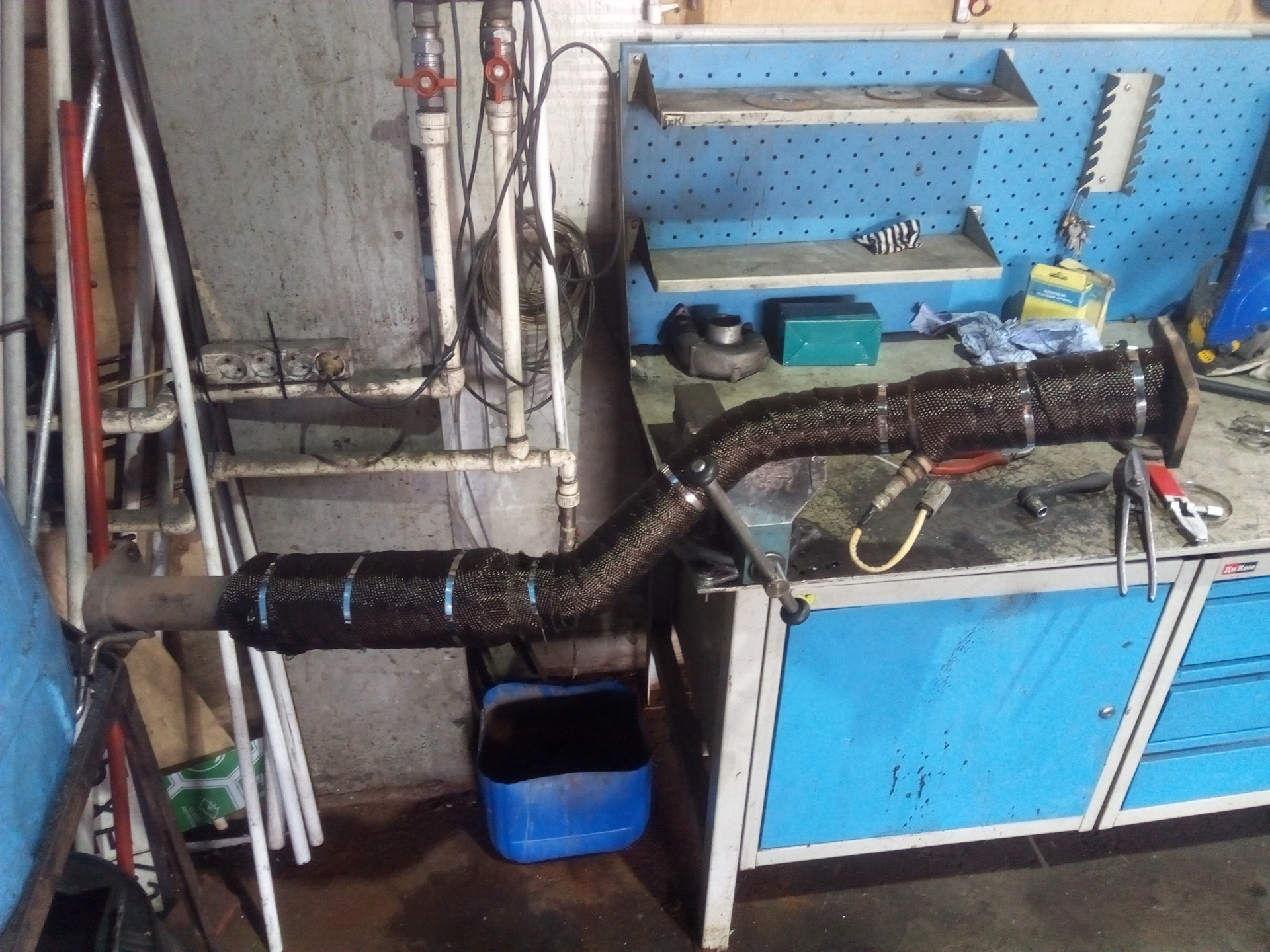 Взял пару мотков базальта 1500 (выхлоп на роторе жаркий) по 10м. Ленточных хомутов, к сожалению, у меня не хватило, поэтому пришлось приспособить пару винтовых :)