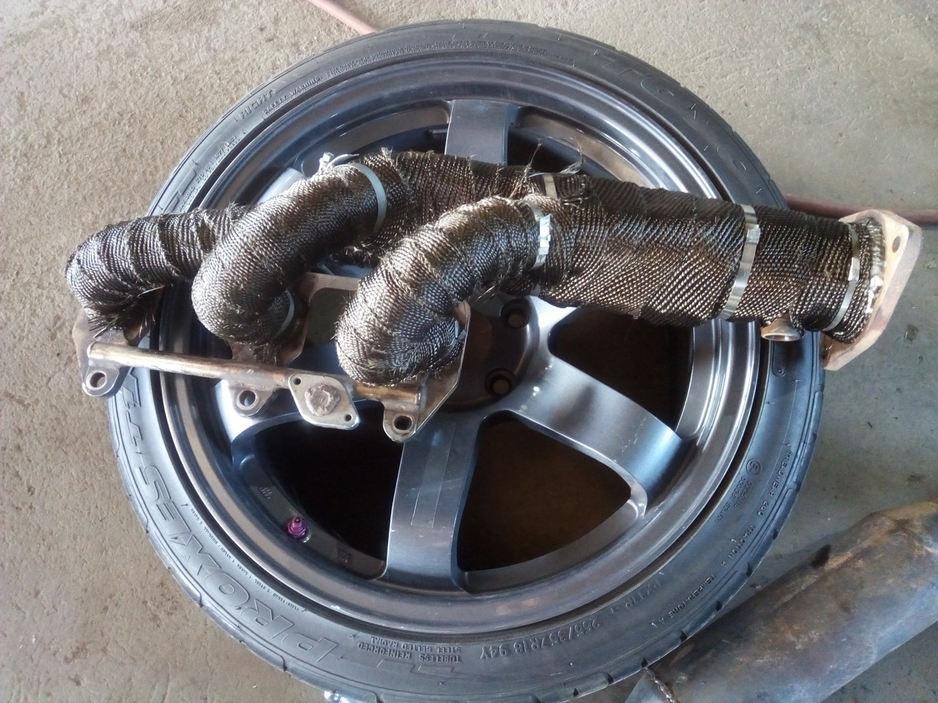 Замотал коллектор, решил замотать приемную трубу тоже, потому что в пробках, в жару, ляжка пригорает от тоннеля, на нее немного не хватило ленты, но основную часть замотал.