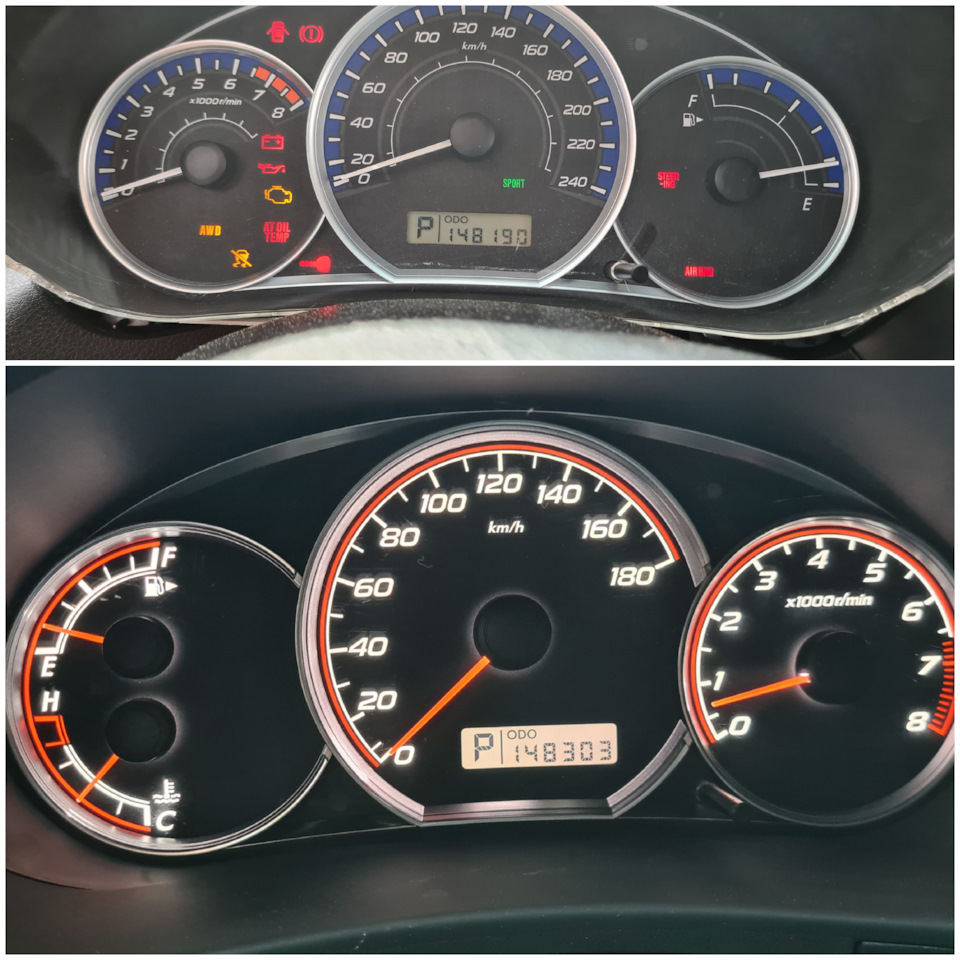 Друзья, привет! Еще в период владения импрезой нравилась приборка рестайлинговая от Forester или Exiga, и вот мечта исполнилась;) помимо этого спасибо огромное Диме Nexxt за его классный приборчик, который умеет отображать на трип-компе: остаток км на бензине, совсем чистое окно, моментальный и средние расходы топлива. Также большое спасибо, что прошил приборку мне под евро расход и выставил мой пробег. Пришлось изрядно постараться, чтобы найти кто сольет дамп в Севастополе, все морозились. Ну задача решена, если кому нужна помощь, дам контакты.