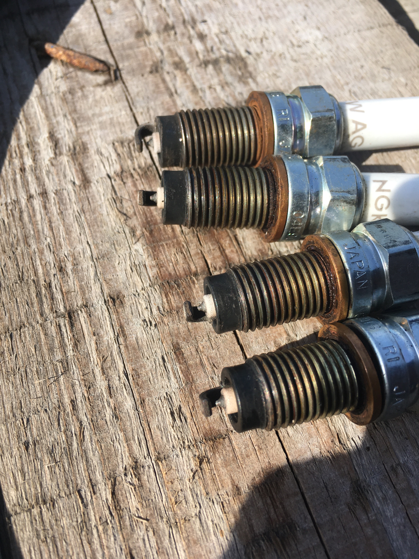 Свечи отходили чуть больше 60 000км, внешне норм, после замены при прогреве пропал запах :)