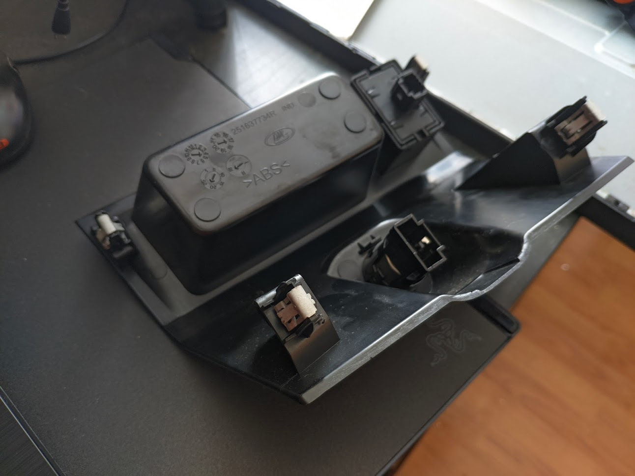 Отключаем два провода(прикуриватель и кнопку отключения ESP) и забираем пилить панель домой.