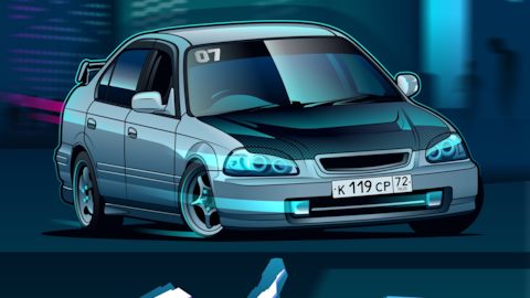 Красный сивик ЕК с туперовским под капотом К20, на хорошей подвеске, прощал пилоту некоторые косяки в рулежке, уверенно везя на тумбочку!