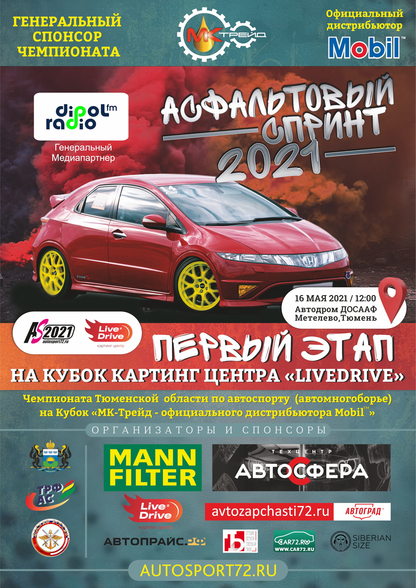 16 мая состоялся 1 этап на Кубок картинг центра "Live Drive", Чемпионата и Первенства Тюменской области по автоспорту ( Автомногоборье), на Кубок компании "МК-Трейд", официального дистрибьютора Mobil и MANN-FILTER, "Асфальтовый спринт 2021"!