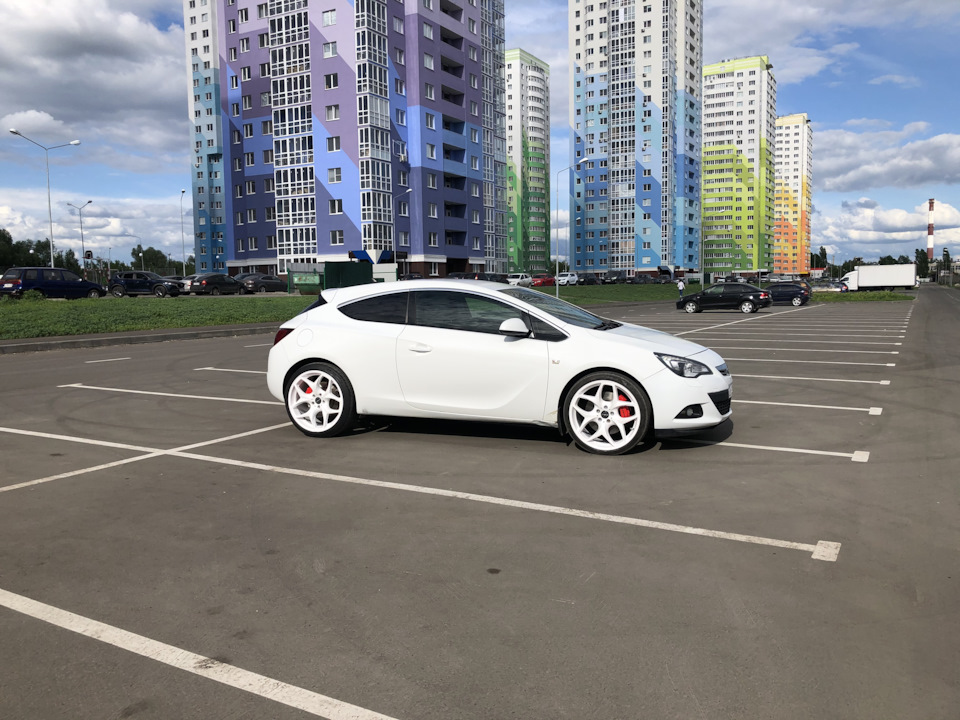Установил на Астру колеса от Х5-6, 215-й стиль, уж больно они мне всегда нравились) диски перед R21*10 дюймов, зад R21*10,5 дюймов, вылет 40 по кругу. резина ПОКА перед:255/35, зад:265/35, с резиной вопрос открытый, возможно буду пробовать какие-то другие размеры. Колёса установлены без переходников, на помощь пришли спереди ступицы от инсигнии (они идентичны нашим, но имеют разболтовку 5*120 как и на BMW, что мне и надо было). На задней оси разболтовку менял путём замены шпилек на более толстые (у нам 12-е, я поставил 14), и соответственно на координатном станке немного сместили центр отверстий на диаметр 120мм, вышло просто идеально чётко! Можно было бы и на передних так сделать, но ступицы от инсигнии уже были куплены)