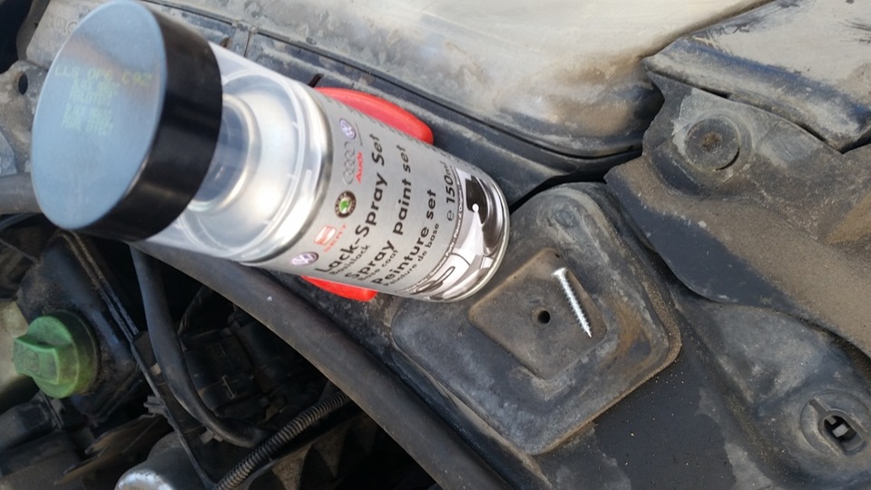Как перенес блоки, начал поиски шурупов дома для решетки, нашел пару таких вот шурупчиков хромированных, вижу что цвет не катит а черных нету, а ехать за ними нафиг надо и зная что есть еще краска оставшиеся от покраски зеркала