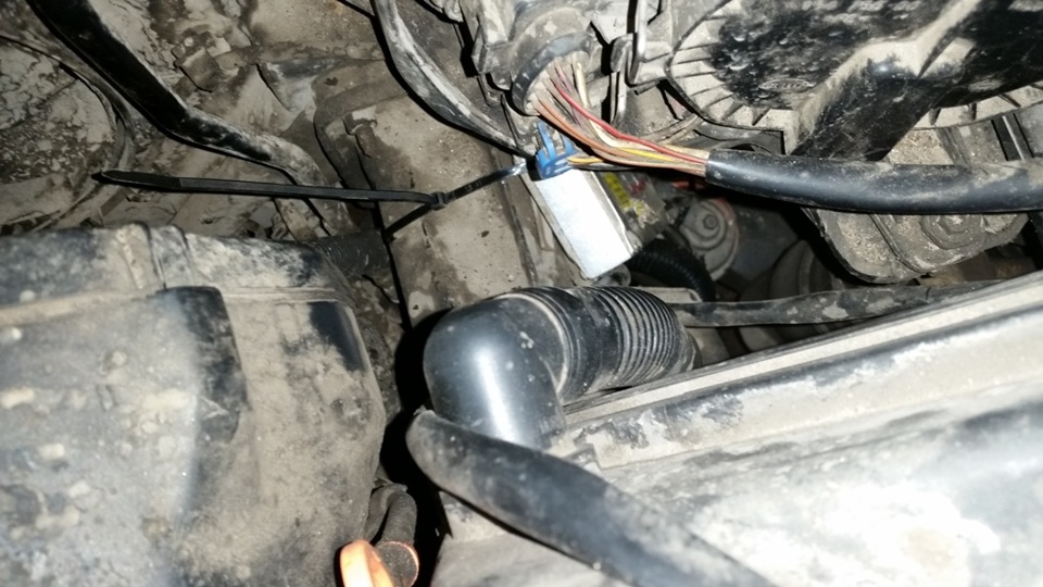 теперь тут все готово. Переходим на правую сторону тут все проще, но в тот ж момент и не проще…(проще что разбирать не надо ничего лишнего, а не проще что там на ланжероне сирена сигналки стоит нафиг…) и поэтому было его зафиксировать другим способом, на хомуты к трубкам и на двойной скотч к какому то пластику возле радиатора