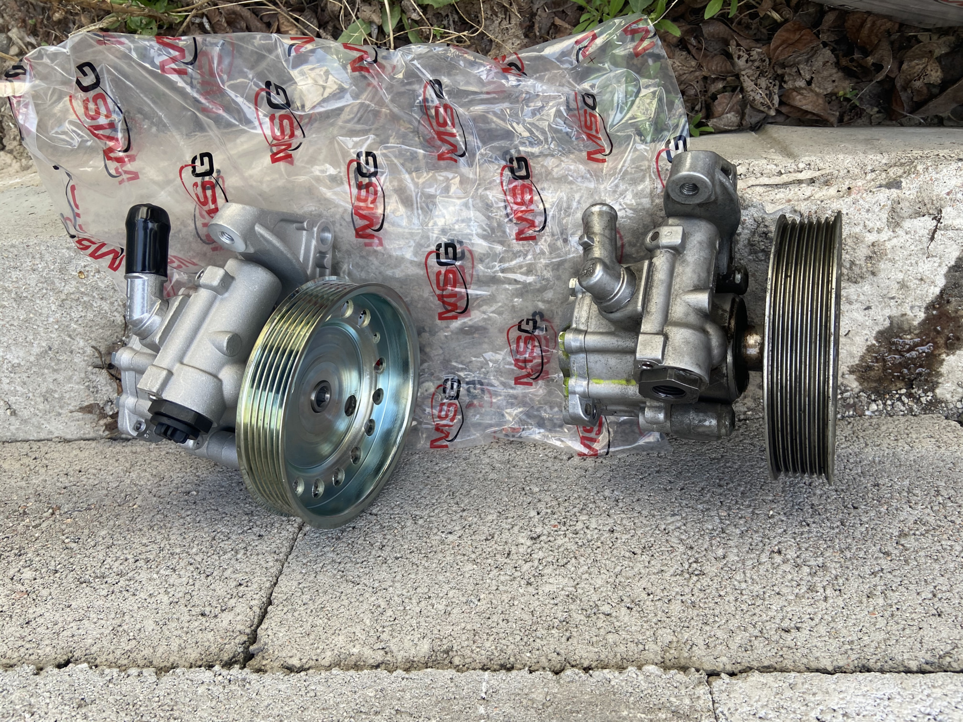 Предыдущий владелец менял рейку на контрактную. У него закусывало руль. Но контрактная рейка хоть и работает нормально, не люфтит, но постукивает на неровностях и при вращении руля на месте. Насос явно тоже стоит б/у оригинал с разбора, это понятно по отметкам краски на нём.