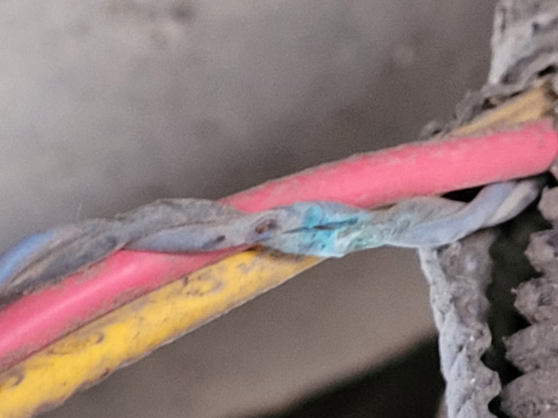 т.е. тут еще не обрыв, но оплетка сгнила и оголился провод и от влажности — коротил ?