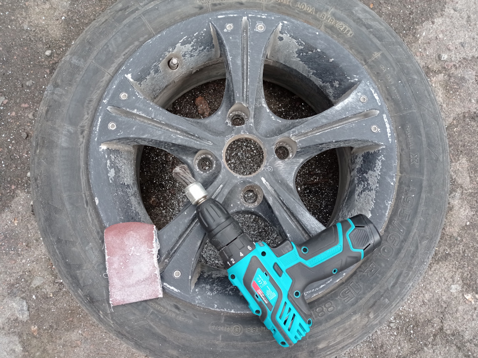 Красил не снимая старую резину — её всё ровно выбрасывать.