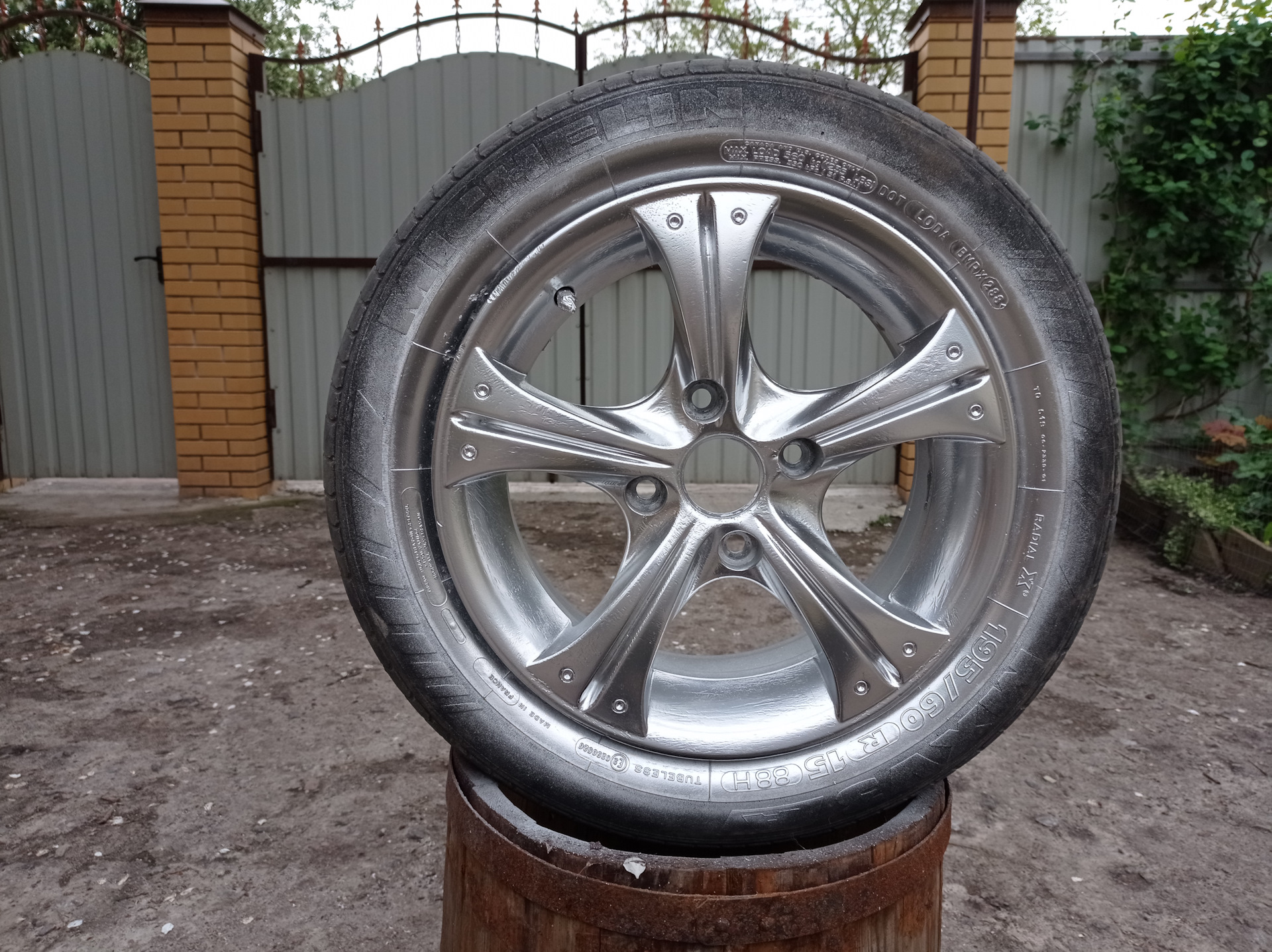 Так как старая краска стала облазить за много лет эксплуатации, решил перекрасить по новой. Заодно и сменил резину летнюю, взял Китай Mirage mr 162 (195/65/15), по отзывам хорошая резина.