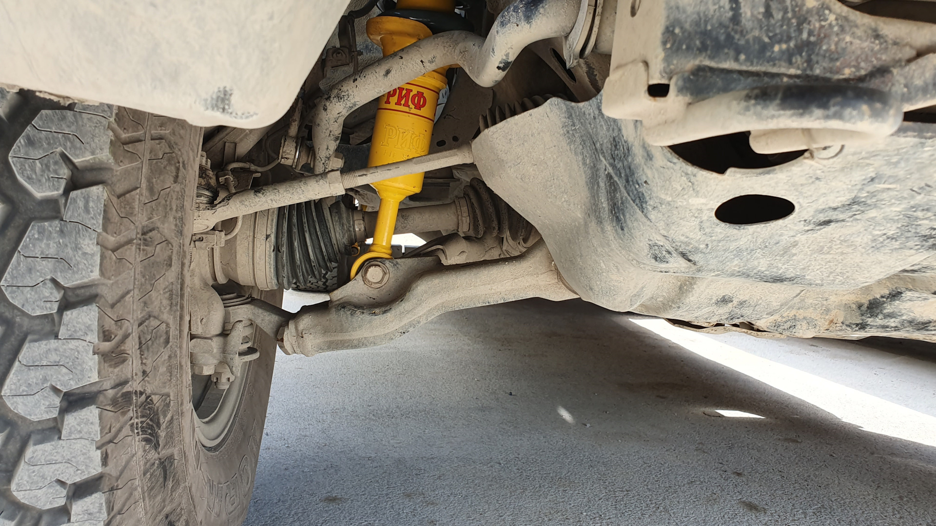 В общем из более менее серьезного за пол года владения созрел на лифт. Из того что было быстро и не сильно дорого был только РИФ. Отзывов хватает как хороших, так и не очень, но все же решился именно на него. Ну и как видно по фото сразу возникла проблема, перед задрался ну слишком сильно! При том, что пружины брал с индексом В, т.е. не жёсткие. По прикидкам фактически выходит от 3" до 4". Шаровые заломлены до предела, приводам тоже не хорошо. Сталкивался кто с таким? Проблема в РИФе или что-то можно было накосячить при установке? По ощущениям пружины не перепутали, стало слегка жёстче родных.