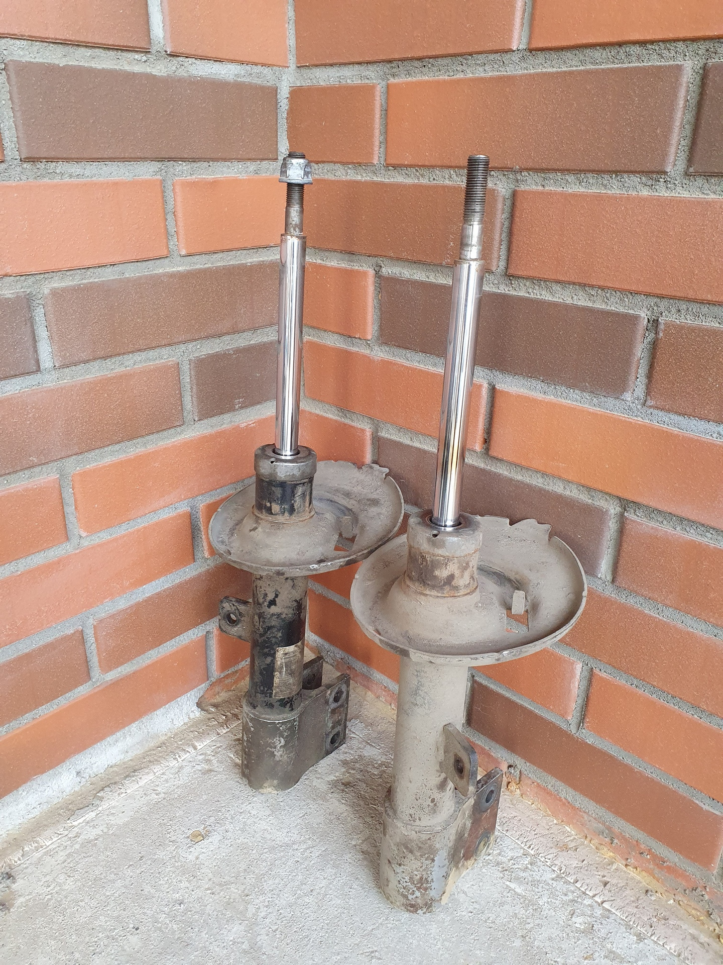 Старые стойки хоть и не вытекли, но были практически мертвые. Шток ходил достаточно легко и почти не выдвигался самостоятельно.