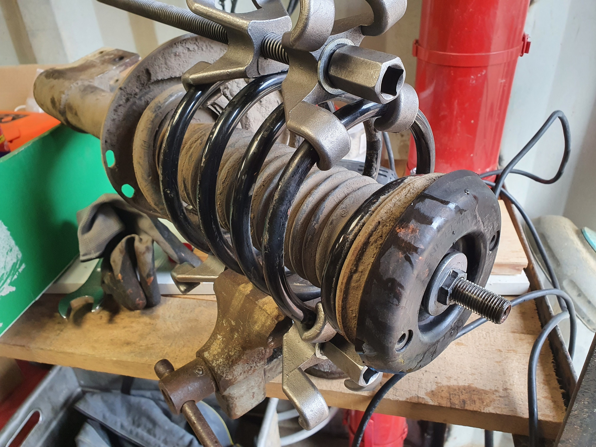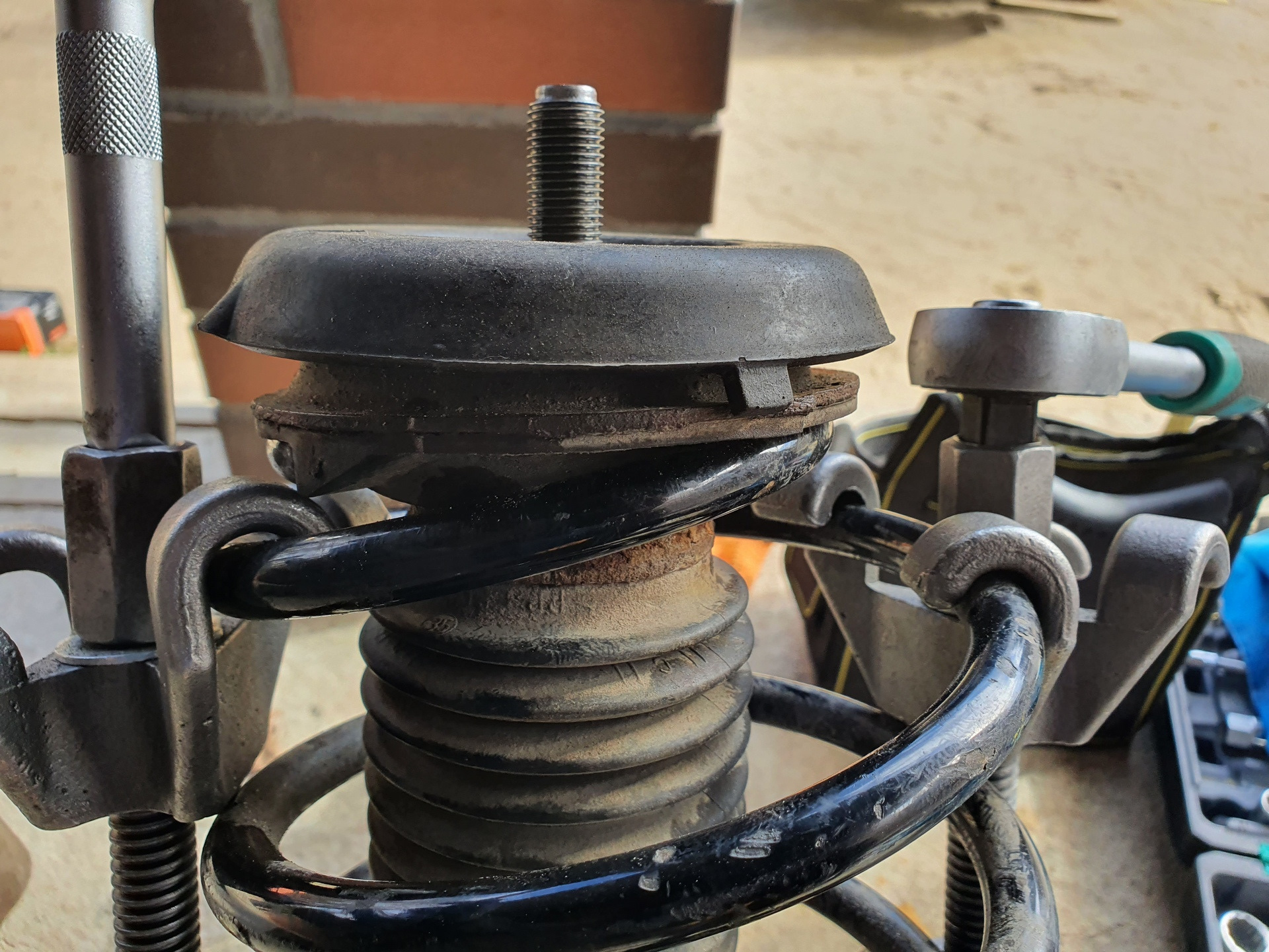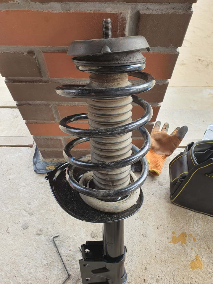 2. Когда на сервисе меняли пружины поломали амортизатор (открутился шток), все это дико стучало, и на другом сервисе мне временно поставили б/у-шную стойку непонятного состояния и пробега. Плюс спереди мне тоже не понравилось как встали опоры от Пежо 307 и как плохо затянулась печенька от DS (думал она исправит проблему, но нет). Узел верхней опоры был какой-то податливый. Понимал, что-то собрано не так.