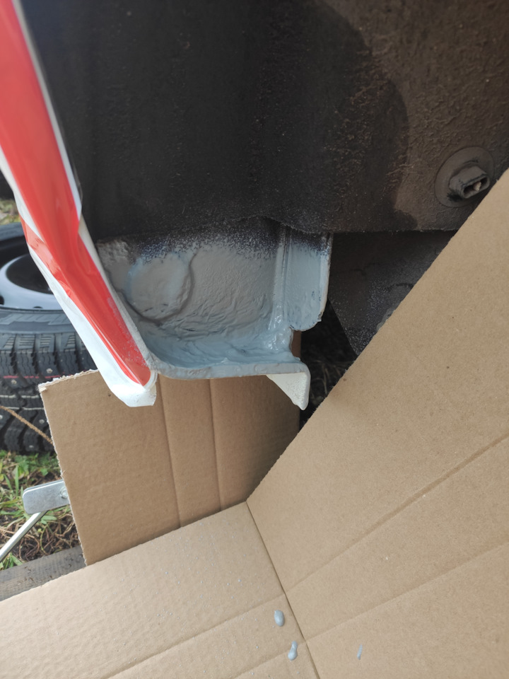 Я ещё прошлой осенью при переобувке на зимнюю резину проблемные места обработал антигравием в два слоя, серебристым сначала, потом во внутренней полости черным, чтобы не бросалось в глаза. А знак Ш использовал для защиты краски от лишнего антиграви, наконец-то этот знак пригодился)