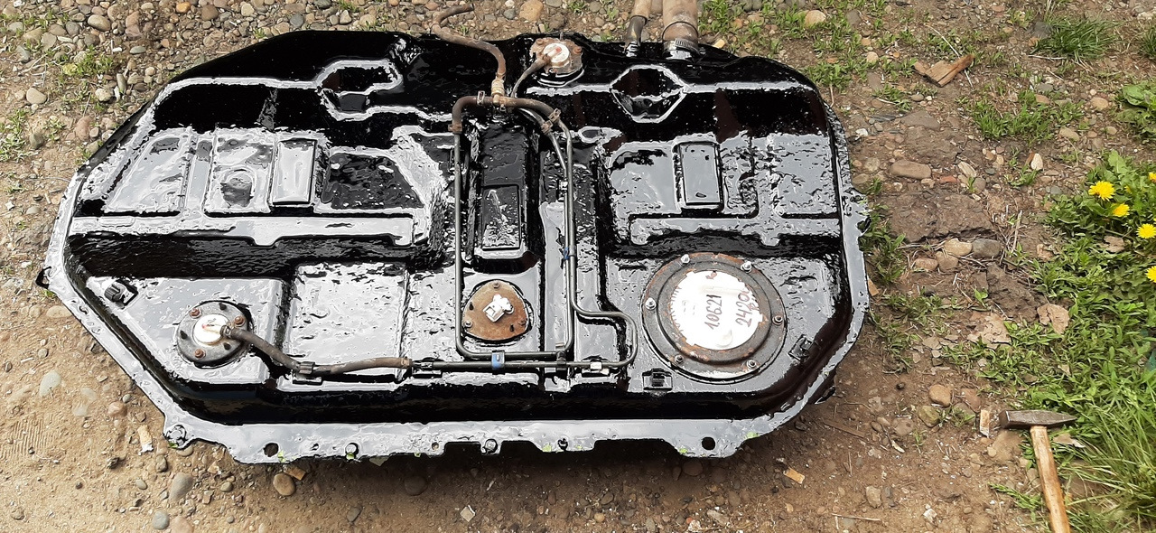 Так как у нас болезнь с гниением бака, было решено сразу зачистить, обработать преобразователем ржавчины на несколько раз и покрыть мастикой, глядишь еще поживет лет пяток)))