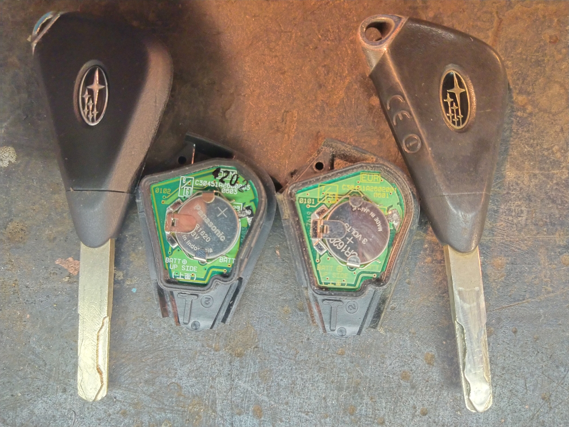 Хочу поделится своим опытом, имея леворульный Субарь, хотел сделать вторую копию ключа. Для этого купил контрактный ключ с пруля. Вырезали новое жало на заготовке, прописали чип, все ок, авто заводится. Но не работали кнопки открытия и закрытия, заказал ещё один ключ с пруля. И с него тоже кнопки не работали (привязывал ключи по стандартной схеме). В итоге разобрав ключи родной и два контрактных, понял что сами платы европейца с джапаном не дружат, т.к. у них даже маркировки разные.