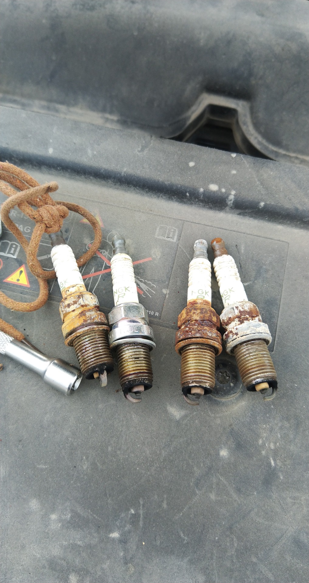 серьезно, что-то очень не так, что и катушки такие ржавые и свечи в состоянии "похороните". ужась, где-то заливает