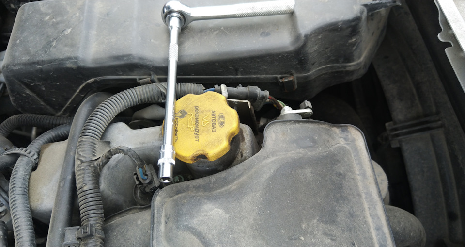 Сам процесс замены можете посмотреть на видео. Отличие только в том что на Весте есть детством крышка двигателя, у нас нет.
