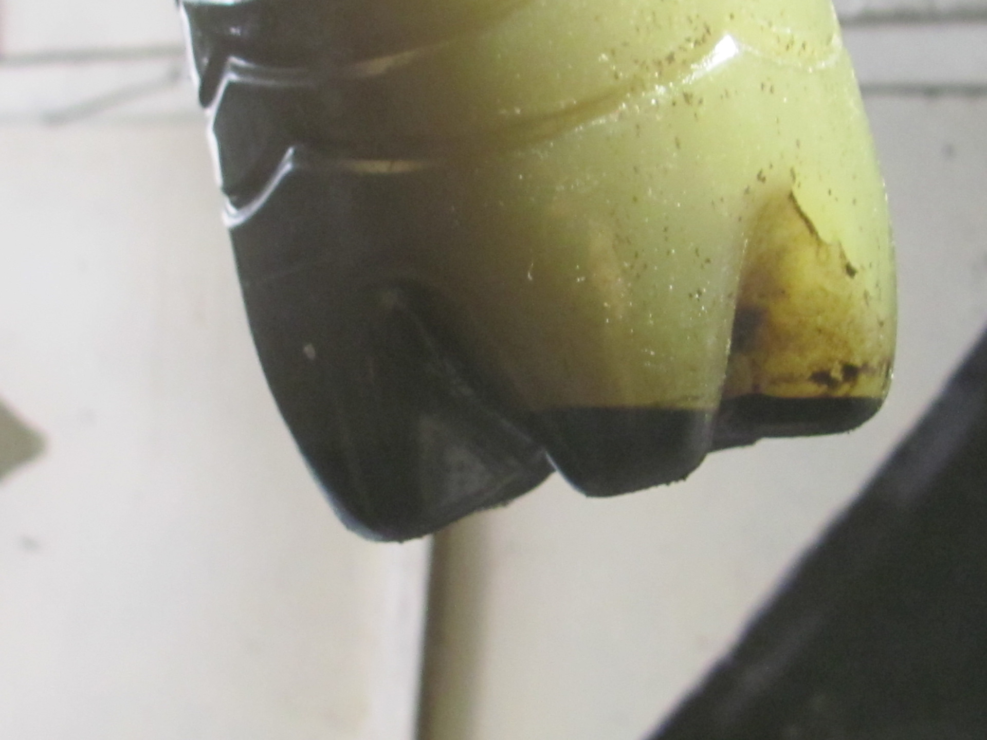 Раствор расходовался: 1 — его остатки после отсоса шприцем выбрасывались из цилиндров на листы газеты при прокручивании стартером, 2 — в составе осадка на фильтре и на дне расходной бутылки, 3 — просачивался между цилиндром и поршнем через кольца вниз в картер мотора, 4 — просачивался через недозакрытые клапана во впускной и выпускной коллекторы, 5 — часть расплескивалась наружу из свечных колодцев при бултыхании раствора внутри отмываемого цилиндра.