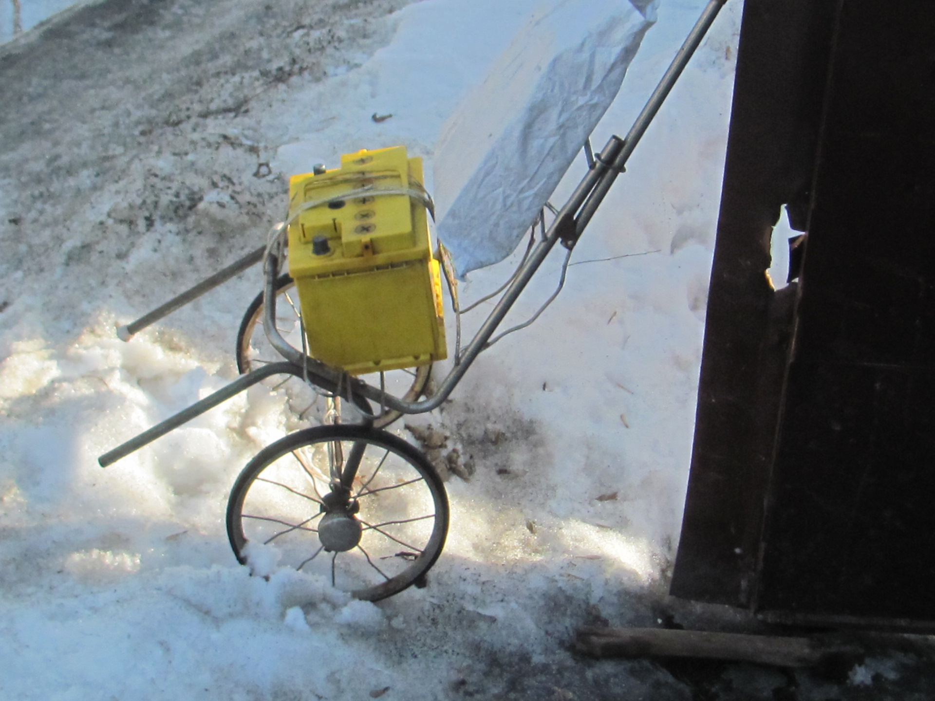 6) Испачканные газеты убирал, потеки вытирал. Закручивал свечи, пробовал крутить мотор стартером — компрессия не возникала, одиночные вспышки, аккум садился — холодный мотор крутить тяжело. Аккум снимался, и на ручной тележке отвозился домой на зарядку. День окончен.