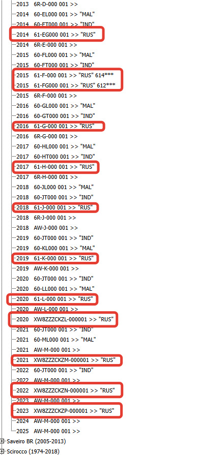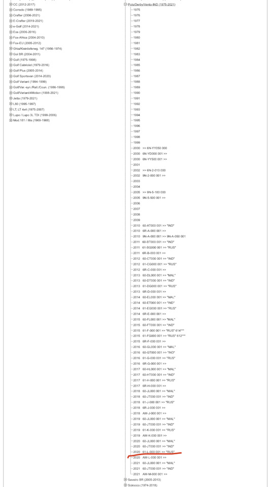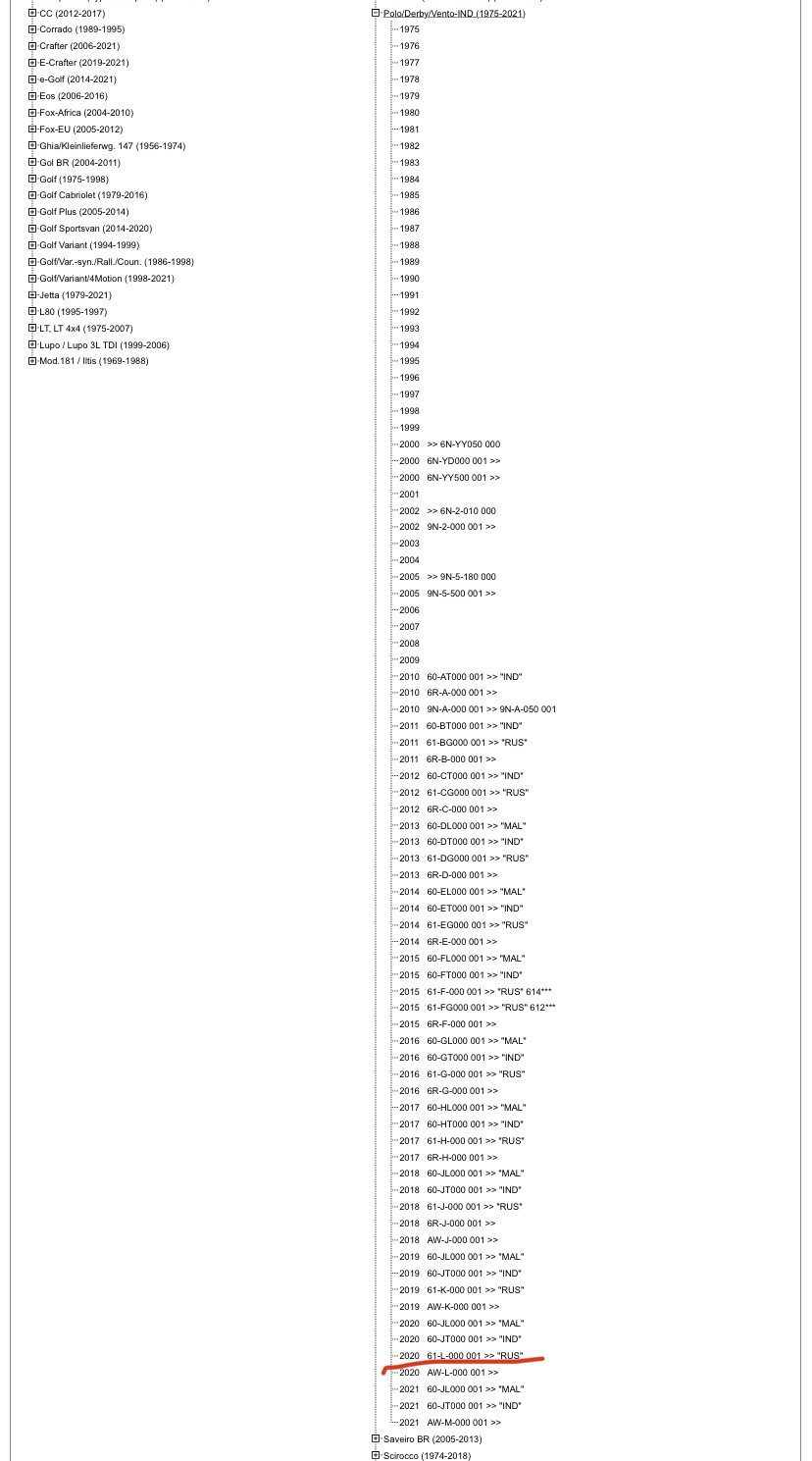 Для остальных: в каталоге открываете Polo/Derby/Vento-IND (1975-), и ищите свой год — RUS.