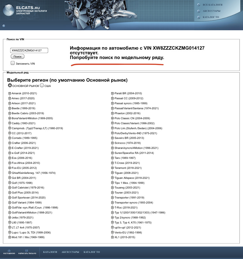 Попробуйте на Автодоке зарегистрироваться. Да, там кстати может быть затуп, типа нет такой машины. Но при обращении в службу поддержки они берут тайм-аут и решают вопрос. Мою машину не могли сначала найти(2019 г.в.), видимо из за комплектации, а вот первый Поло(2013 г.в.) быстро нашли и сделали личный гараж(каталог).