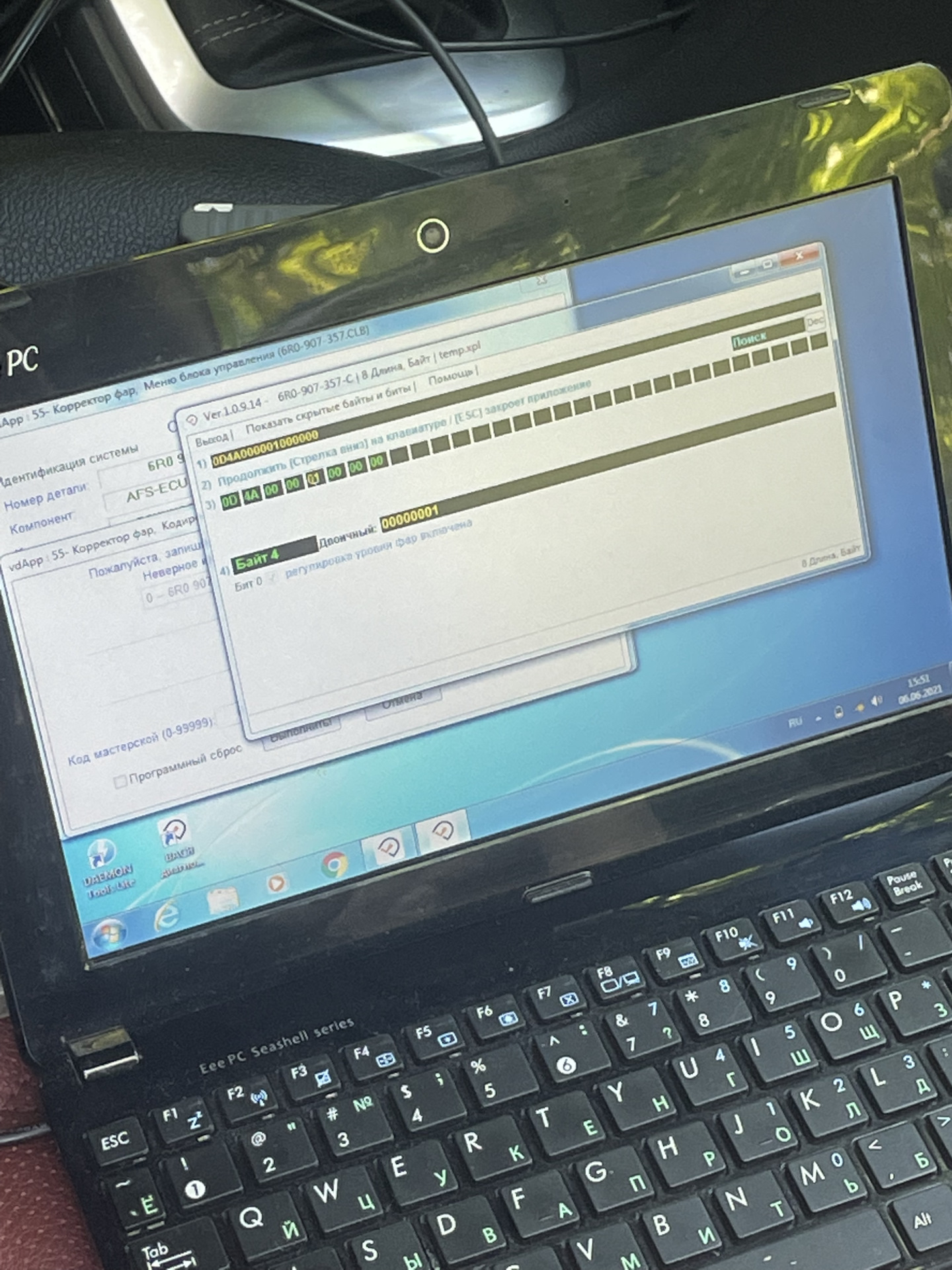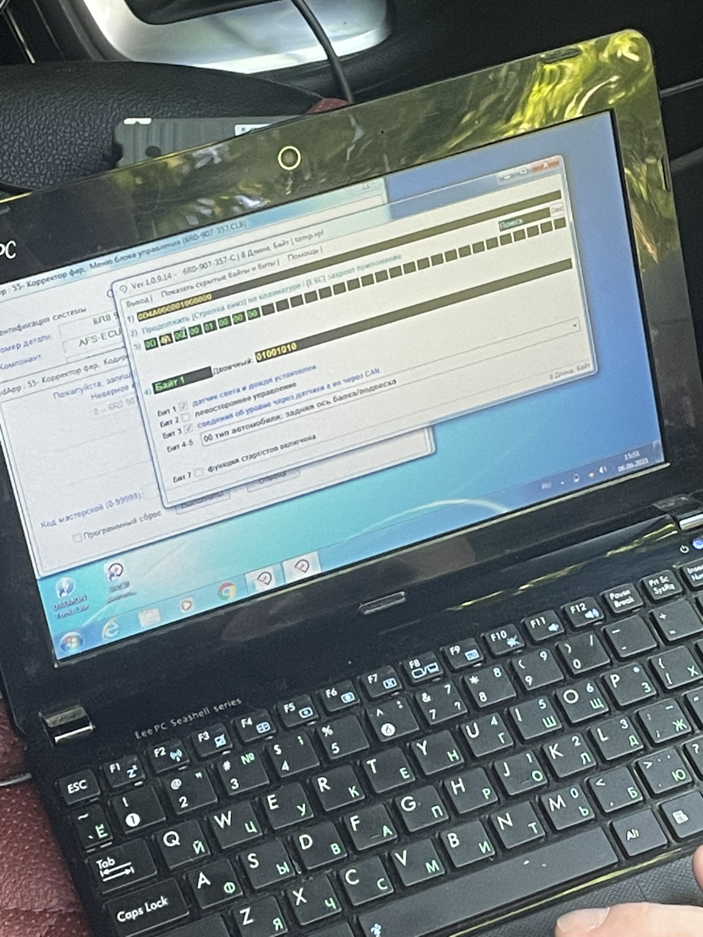 Для начала мы сделали мой блок ВСМ с «диодной» прошивкой. Это получилось осуществить через ВагКанПро. После сохранения настроек ВСМ фары «ожили». Но нужно было перенастроить кодировку, которую мы первоначально нагородили и сделать все по штату. Для этого необходим Вася диагност. Нужную штатную кодировку мы просто стащили у моего друга с заводской Led оптикой, а потом все остальные параметры подкорректировать под меня.