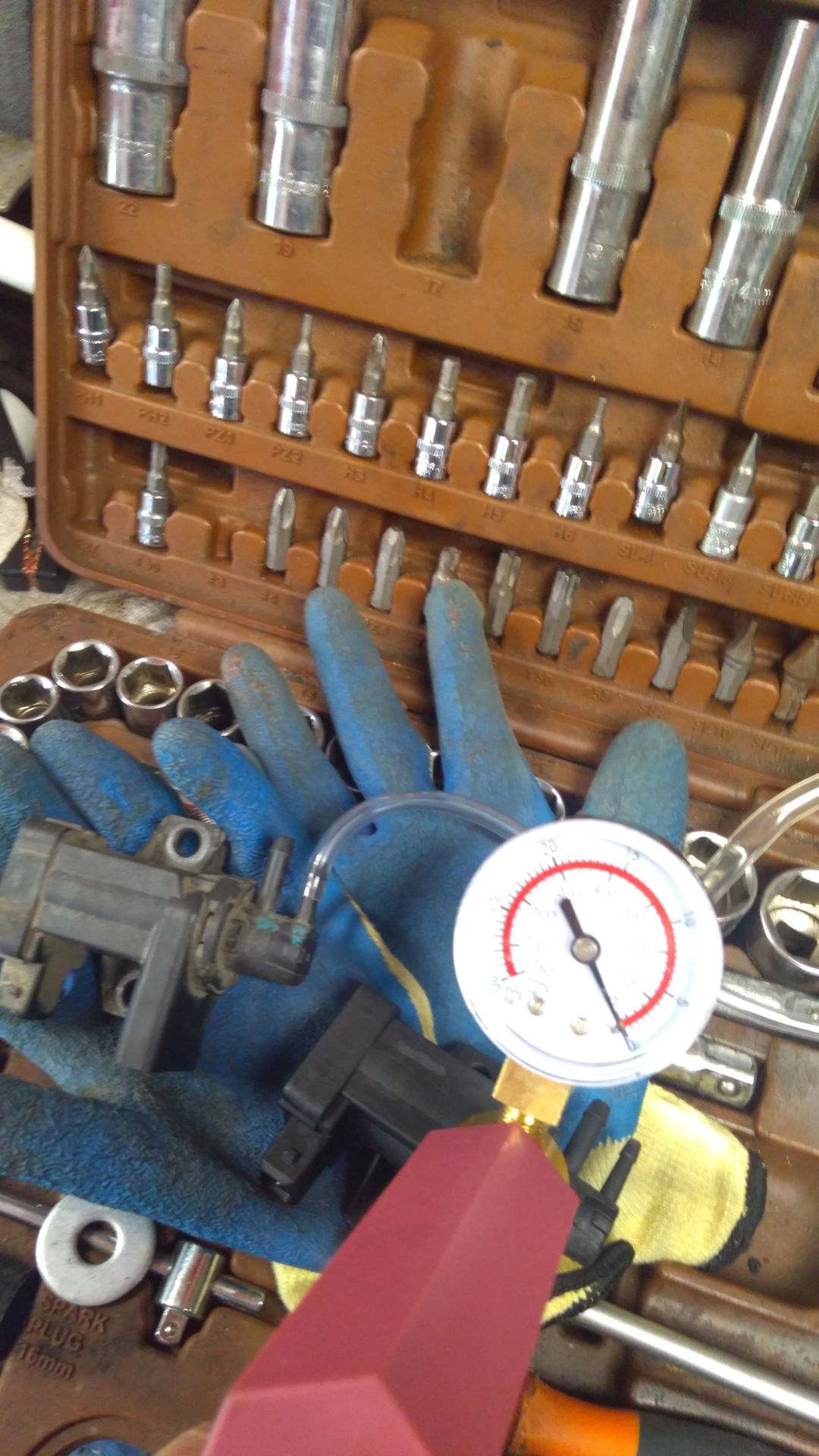 Для проверки вакуумной линии желательно приобрести простейший ваккуметр с манометром. Я брал первый попавшийся из китая за 800р в пластиковом корпусе. Идущие в комплекте трубки на 5-6 мм надо доукоплектовать трубочкой на 3-4 мм для проверки клапанов турбины и впускного коллектора.