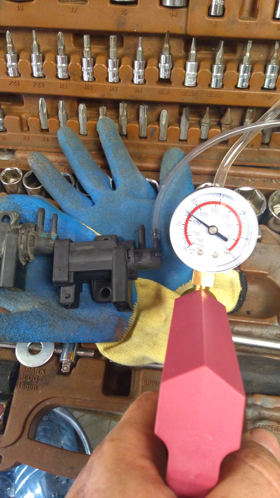 Также проверяем управляющий клапан EGR — вакуум держит.