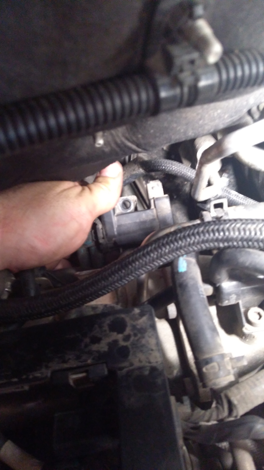 Значит надо лезть к клапанам управления турбиной и коллектором. Отсоединяем крепление мешающейся трубки и нащупываем пальцами клапана.