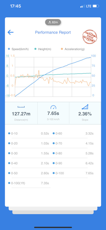 У меня тоже полный бак, самое что смешное когда я был один, лучшее время показал 8 секунд, с братом показал 7.65, погода за бортом была +28 градусов