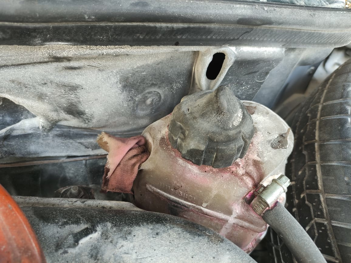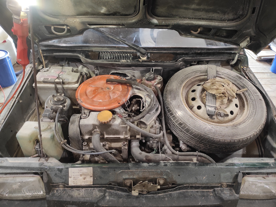 А история такова, со слов деда. Завел машину, она на подсосе, выехал из гаража, и замечает что она начала троить, он чуть убрал подсос и нажал на газ, под капотом что то хлопнуло и пошел небольшой дымок, но дымок никуда не ушел, он открыл капот, а там уже горит, накинул бушлат и бегом за огнетушителем, повезло, тачка осталась жива. Он еще и на работу на ней доехал, это нечто, делать нечего, надо реанимировать. Отогнали домой, посмотрели проблемы. По итогу замена бензонасоса, он виновник, каким то образом выкрутился болт и бензин брызнул на коллектор. Отсюда и огонь. Так же заменили 3 шланга, они оплавились и пришлось переделать пару проводов. В остальном тьфу тьфу, лайтовый пожар.