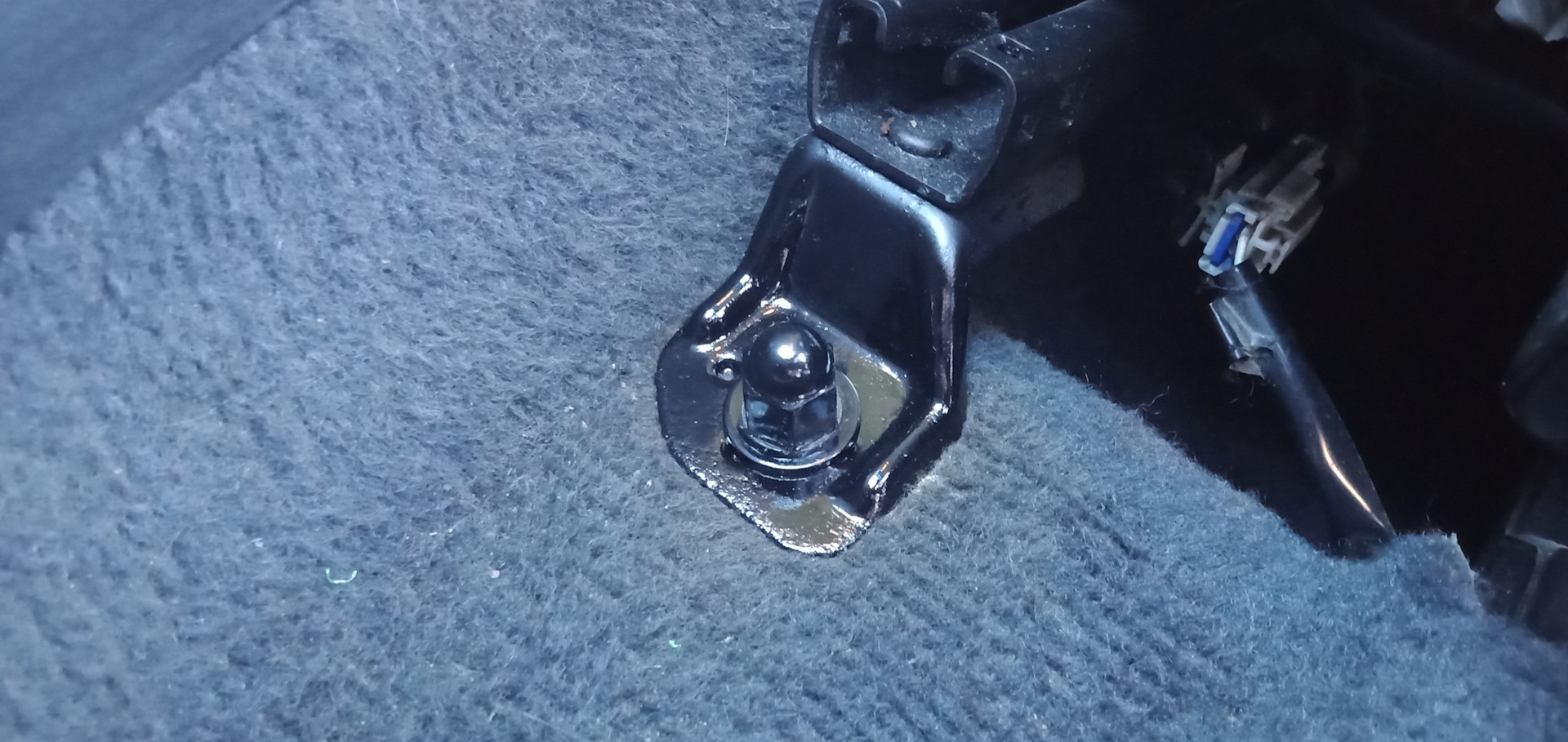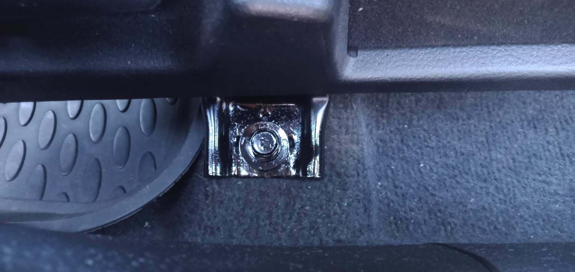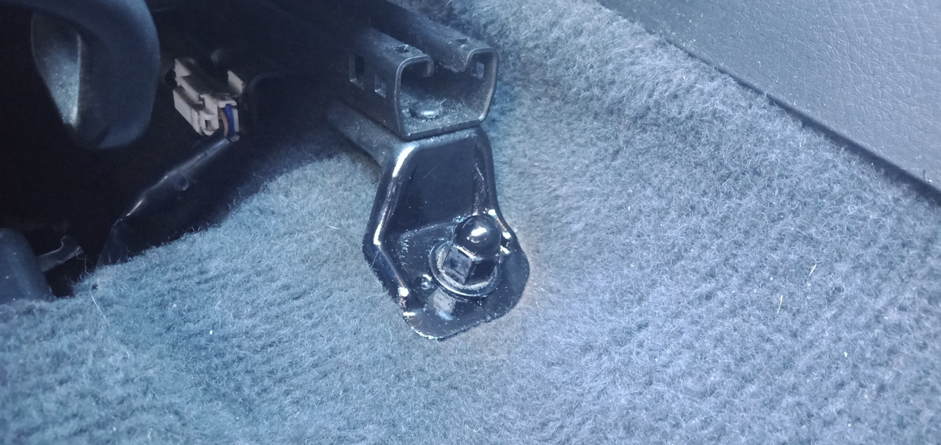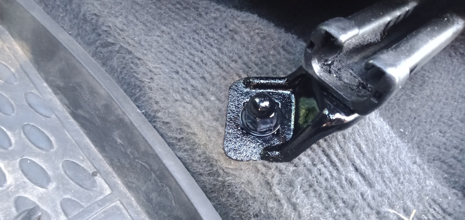 Сдвинул сиденье вперёд до упора и пересев на заднее сиденье выкрутил болт торцевой головкой на 14 мм с ключом-трещёткой. Рекомендую именно таким ключом пользоваться, удобно и быстро.