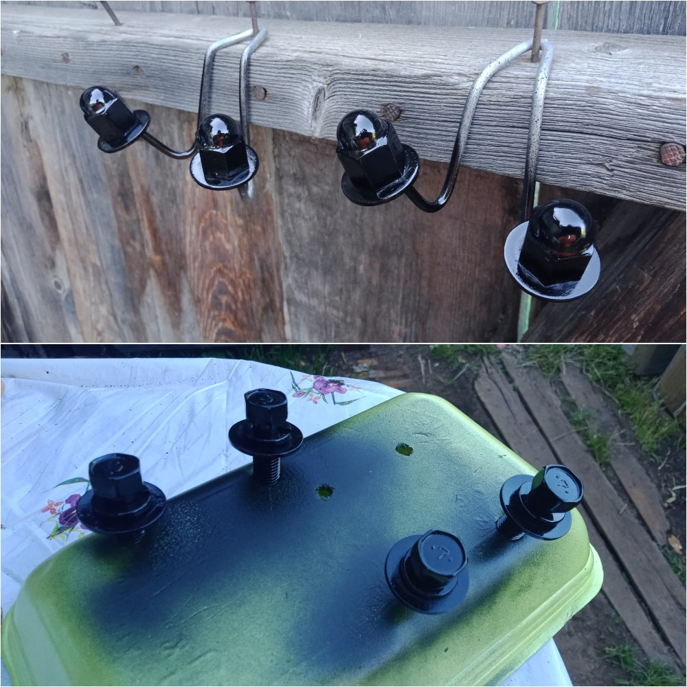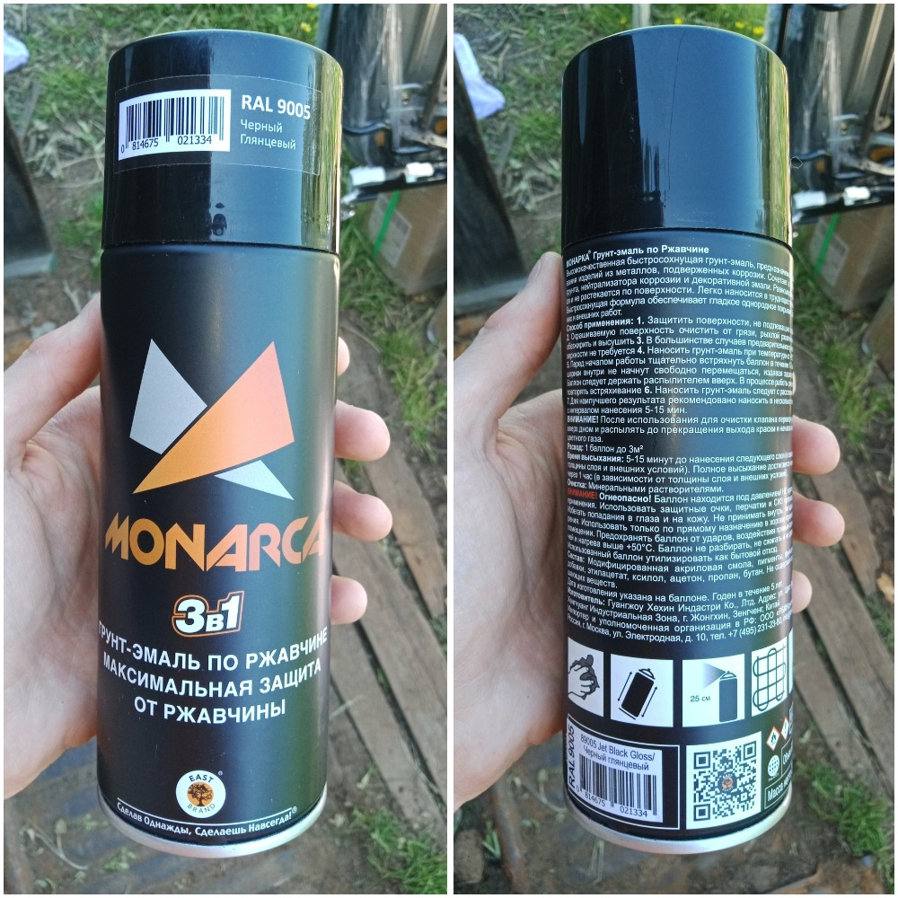 Окрашивал в 2 слоя чёрным глянцевым грунтом-эмалью MONARCA.