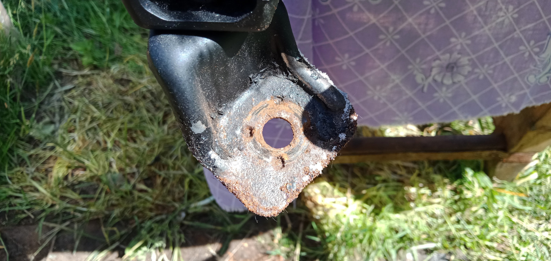 Вот так выглядели крепления. Ржавчина была и сверху и снизу. Снизу фотографировать не стал, и так слишком много фото получилось. Прикрепляю вид сверху.