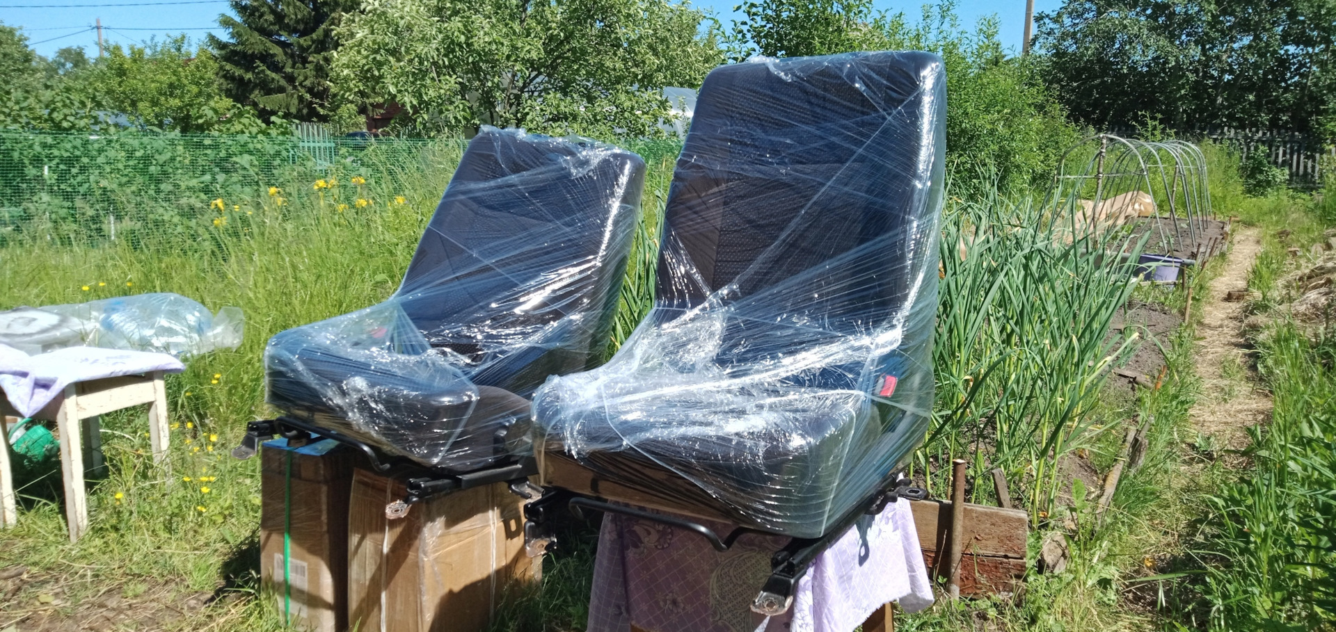 Перед началом работ по зачистке ржавчины и покраске замаскировал сиденья стрейч-пленкой, чтобы не запачкать обивку.