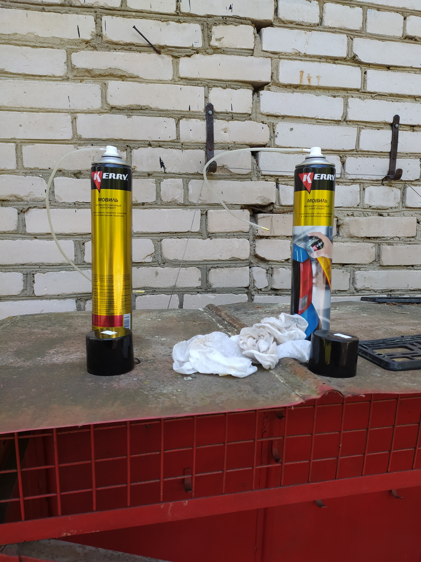 Осторожнее с мовилем! 5 год не выветривается салон.Также делал, еще и двери пролил.По литру Мовиль НН в пороги и в двери примерно такой же из литровых баллонов. Можно обычным тад 17 обработать или чем то подобным или восковыми составами без запаха.Мовиль настоящий пропал в начале 90г. с развалом СССР (название мовиль: Москва-Вильнюс).