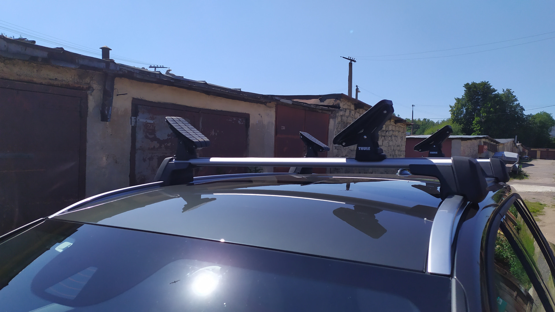 В итоге было принято решение приобрести багажник на крышу, чтобы можно было возить и SUP, и байдарку (про неё смотрите в следующих сериях). У Volvo есть штатный аксессуар, который довольно-таки недорого стоит, а также, как выяснилось, полностью повторяет по конструкции Thule 874. Однако по зрелом размышлении было принято решение взять более "продвинутую" модель от Thule, а именно DockGrip 895.