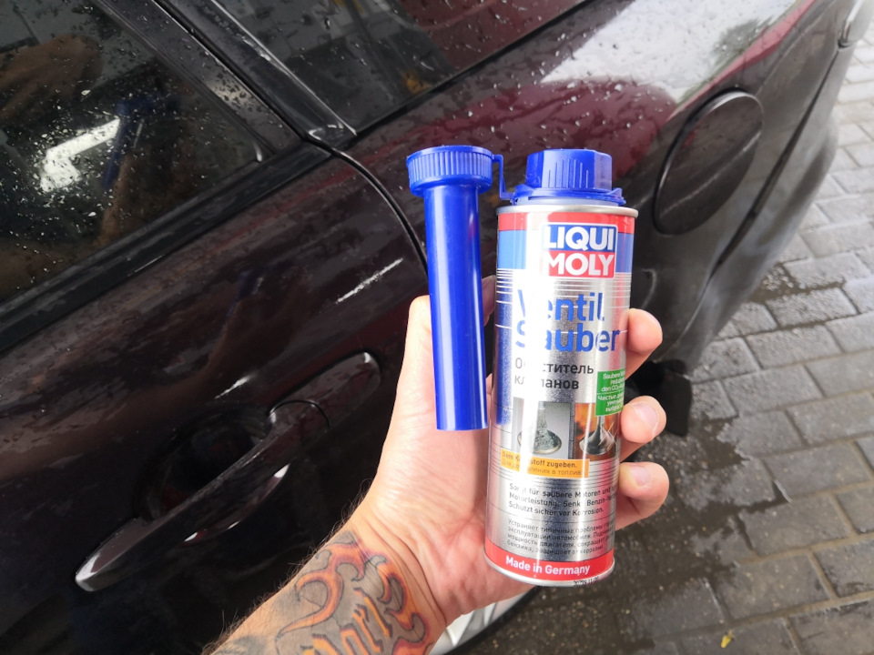 Воодушевленный эффектом от очистителя форсунок, я с не меньшим энтузиазмом опрокинул в бак очиститель клапанов Ventil Sauber опять таки от Liqui Moly.