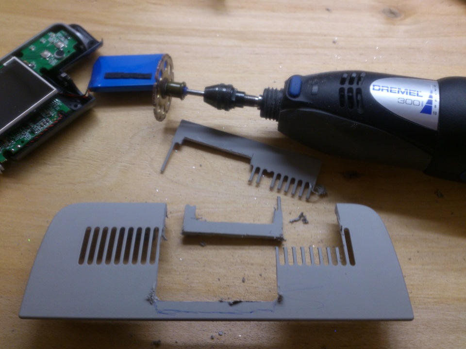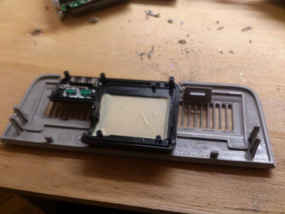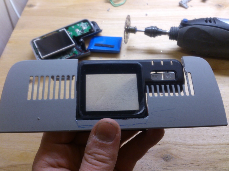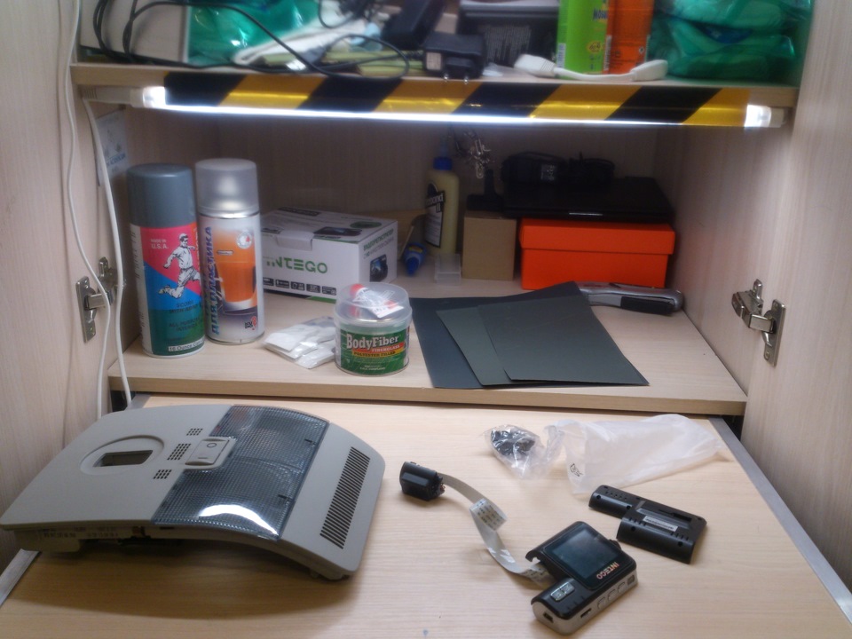 В верхней выпилил дыру по форме повторяющую переднюю панель регистратора