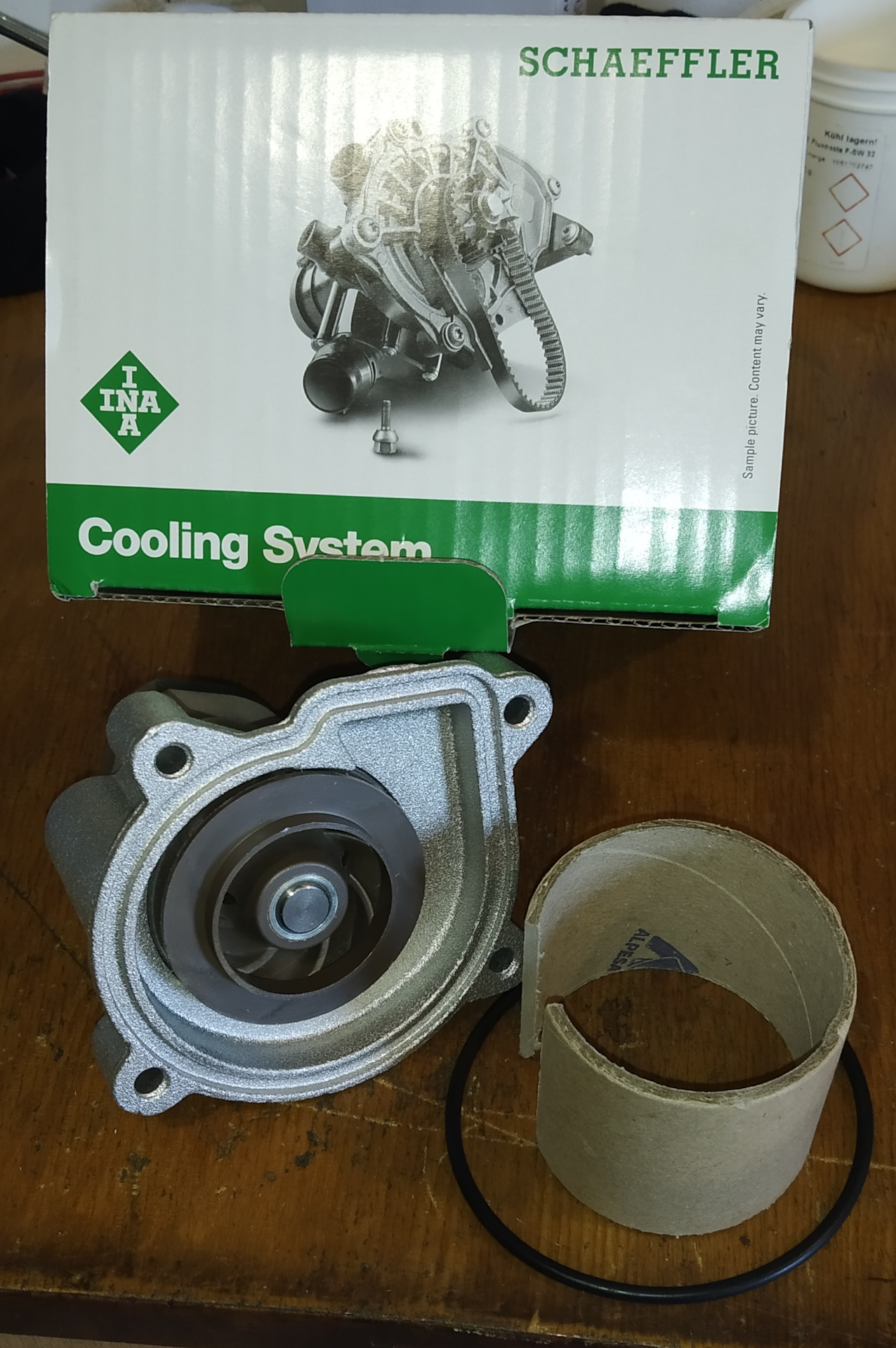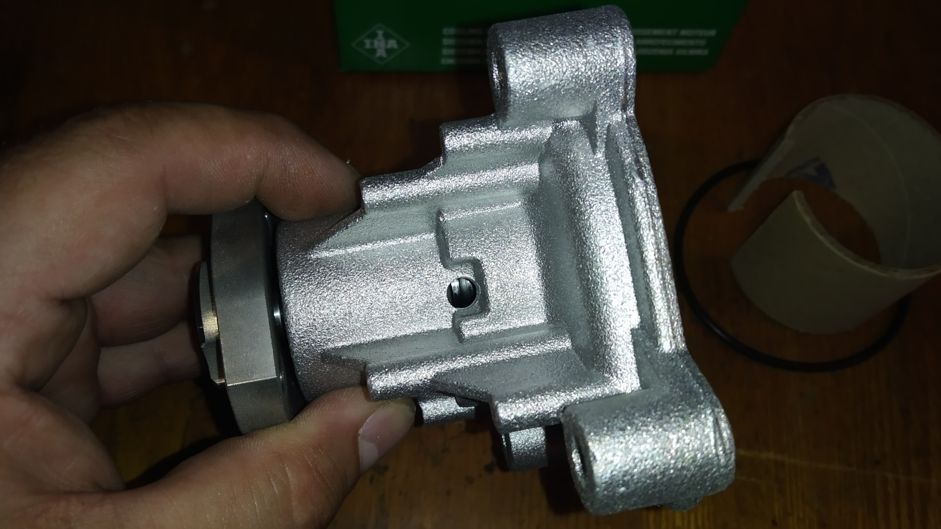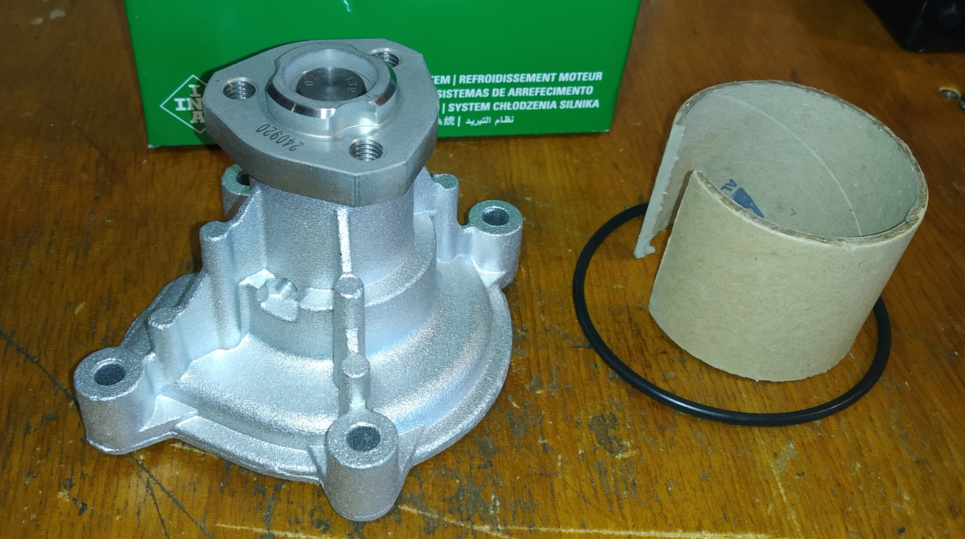 Мой выбор пал на известного хорошего производителя подшипников — INA. Какие он делает помпы — я не знаю, но, полагаю, что если подшипники ходят долго, то и сальник помпы должен выходить не меньше. В общем, поставил на эту очень неплохую и известную лошадь. Посмотрим, насколько далеко она сумеет убежать.