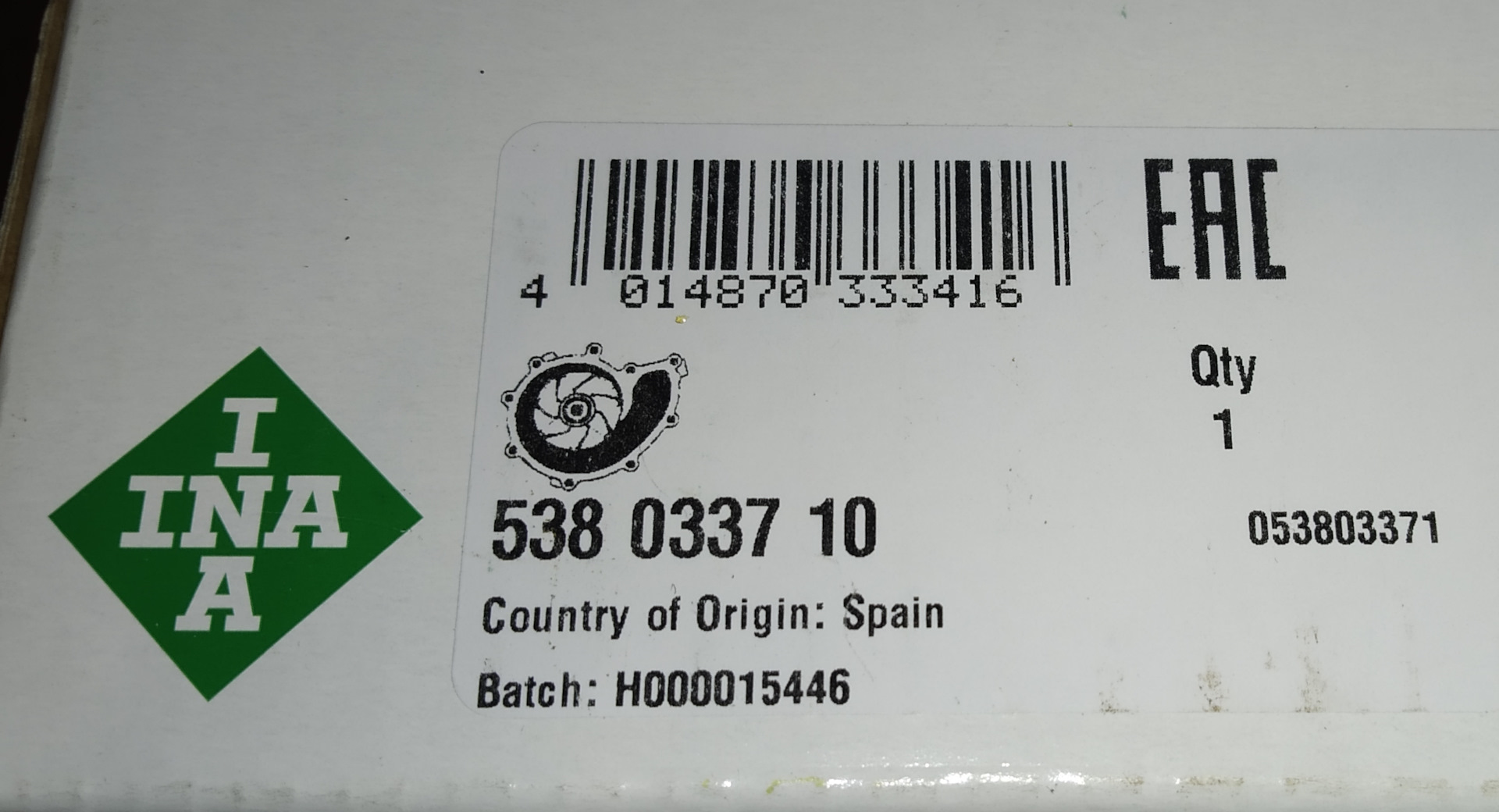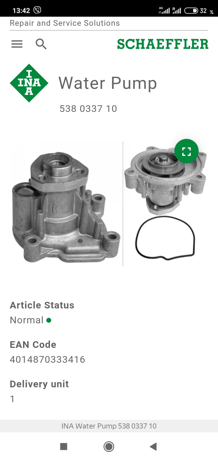 Пробив QR-код, вышел на страницу официального сайта INA, и на изображение моей помпы.
