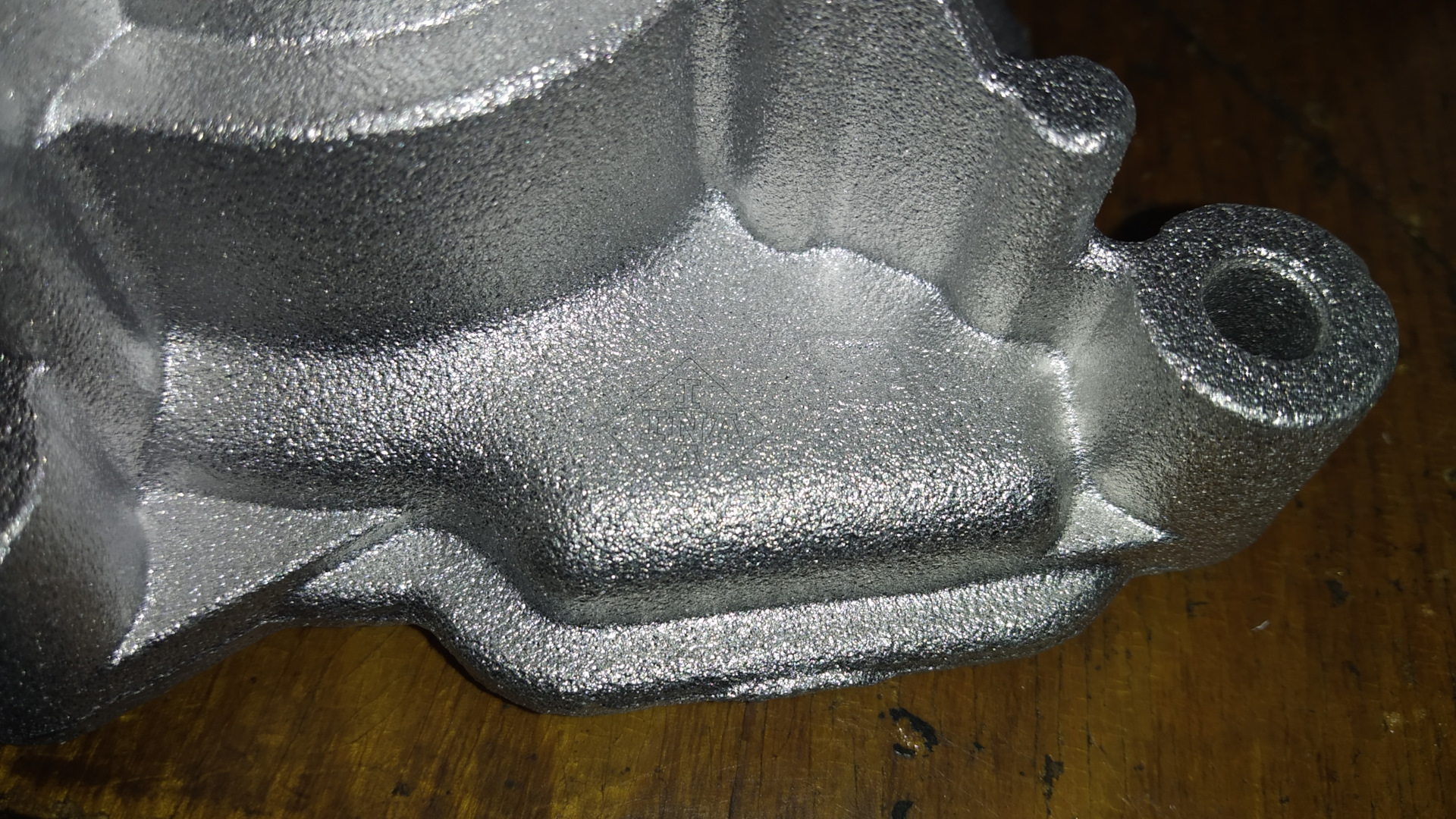 Долго искал какие-либо опознавательные знаки на корпусе помпы. Уже было дело подумал, что в коробку положили что-то иное, но нет, нашёл я этот опознавательный знак.